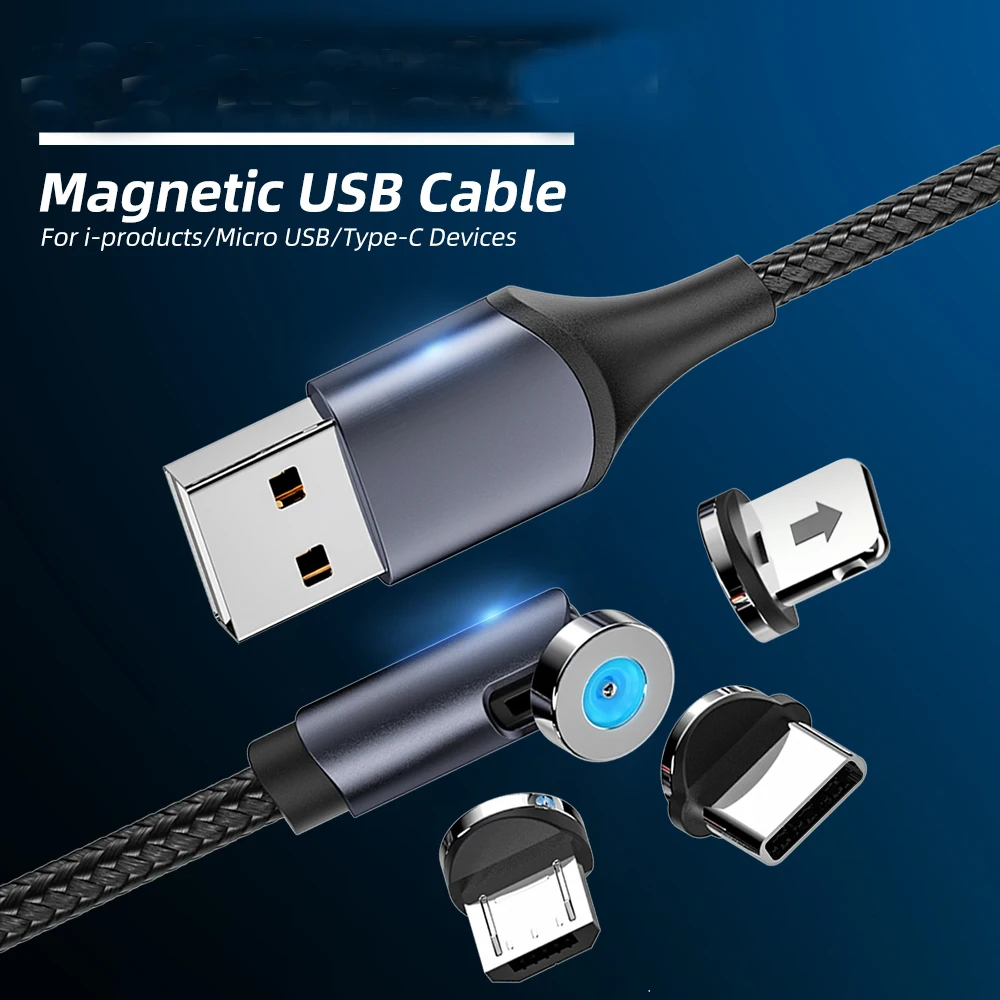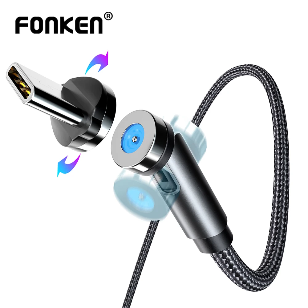 Магнитный кабель FONKEN, вращающийся на 540 градусов, Тип C, Магнитный зарядный кабель Micro USB, Магнитный зарядный шнур, магнитный кабель для Iphone 11 8