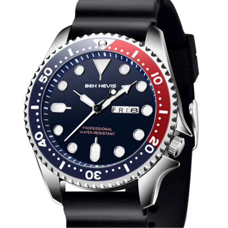 Бен Невис Новый Для мужчин часы для мужчин каучуковый ремешок кварцевые часы светящиеся стрелки Военная Униформа Водонепроницаемый наручные часы Relogios Masculinos