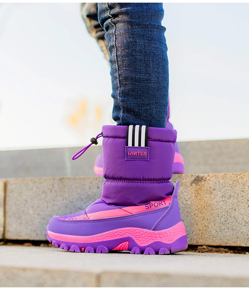 Высокое качество; Коллекция 2021 года; Детские зимние ботинки; Теплые плюшевые зимние ботинки для мальчиков и девочек; Детская зимняя обувь; Нескользящая водонепроницаемая обувь
