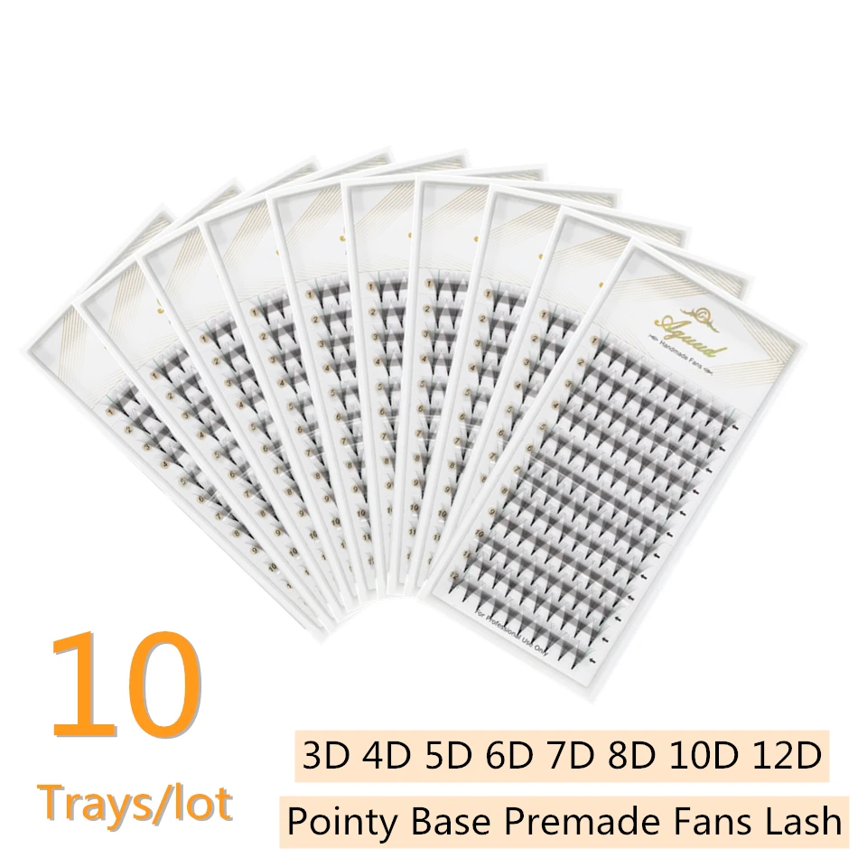 Agud 10 лотков/партия 8D 10D 12D готовые объемные узкие ресницы для ресниц 3D 5D 6D остроконечная основа острый стержень предварительно сделанные ресницы для наращивания ресниц