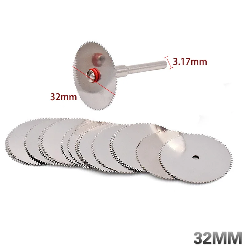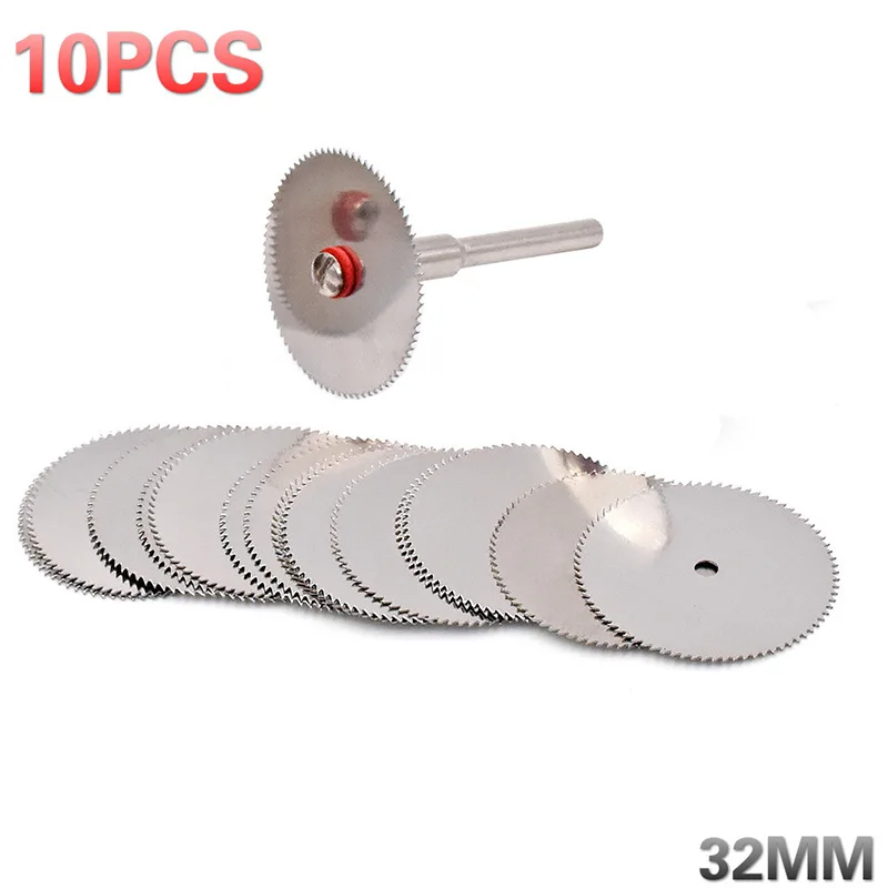 10 шт. 32 мм аксессуары для dremel металлический режущий диск из нержавеющей стали с 2 оправками для вращающихся инструментов Dremel