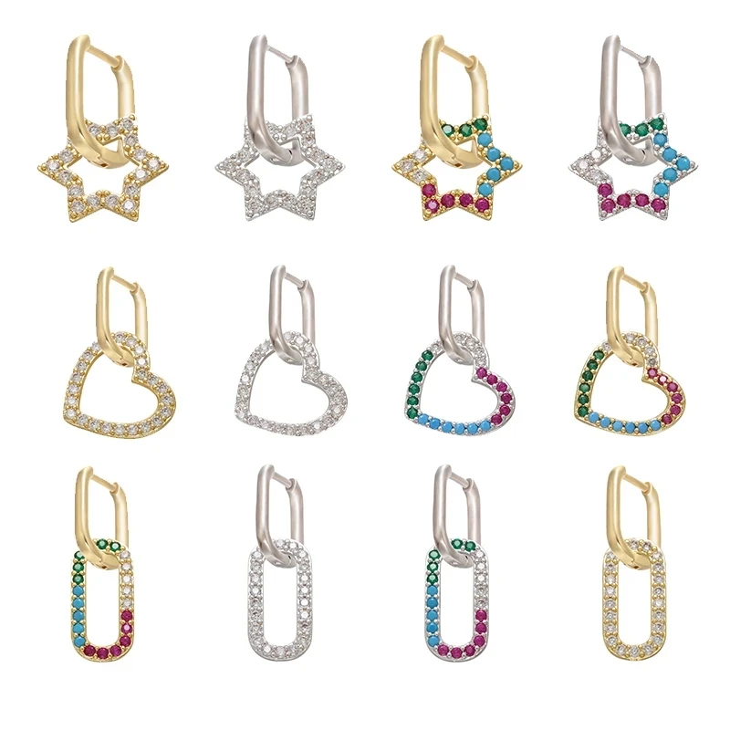 ZHUKOU 2020 Новинка 1 шт CZ Кристалл маленькие серьги-кольца золотосердечко серебряного цвета круглые прямоугольные женские серьги оптом VE230