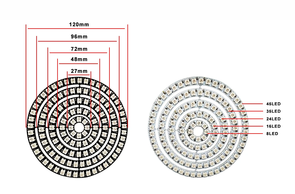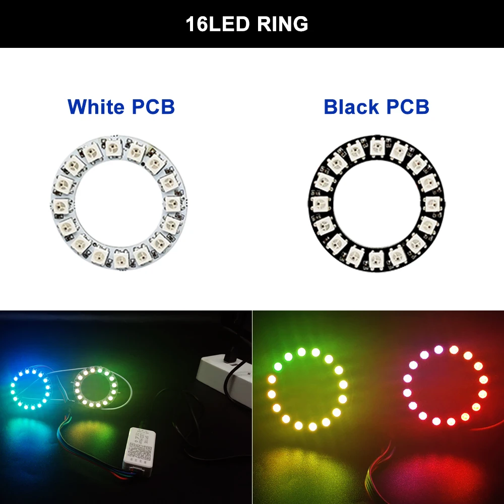 Индивидуально адресуемое кольцо WS2812B 5 в постоянного тока WS2812 красный зелёный синий пиксель IC светильник черныйбелый PCB украшение для дома