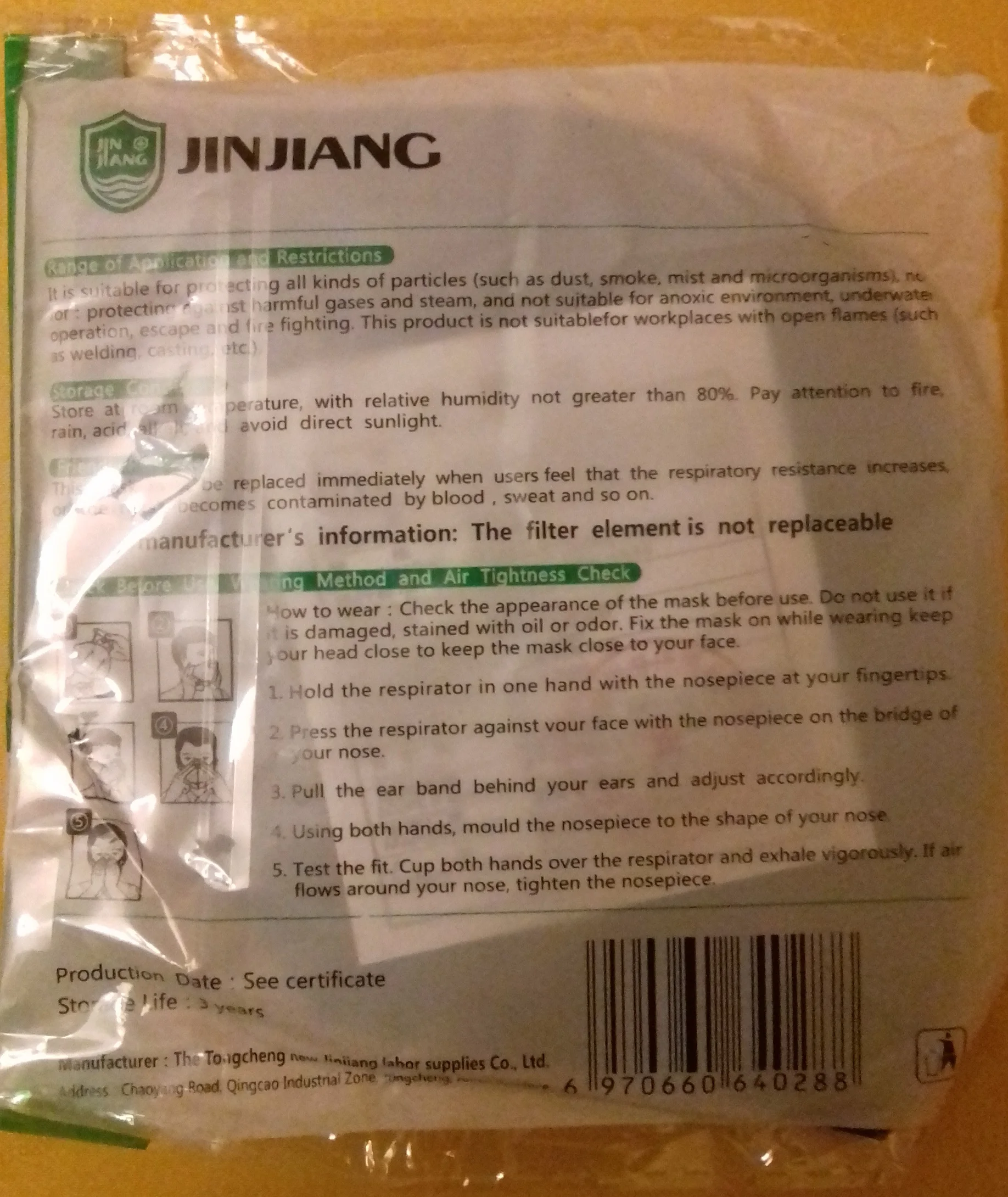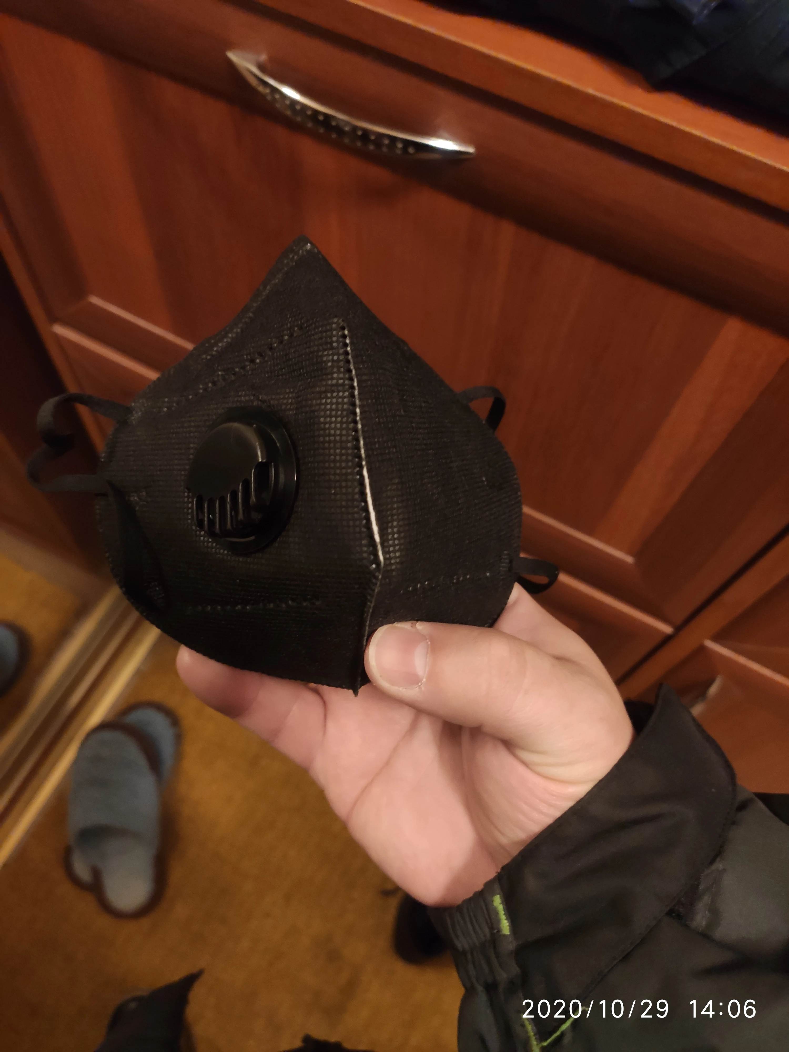 Заказ шёл до СПб почти месяц. Маски индивидуально упакованы и имеют сертификат на китайском языке, вложенный в упаковку. Инструкция по использованию напечатана на упаковке на английском языке. В районе прилегания маски к носу имеется и поролоновый уплотнитель, и изгибаемый металлический "мостик". Клапан срабатывает только при очень энергичном выдохе, возможно, когда в результате эксплуатации поры маски загрязнятся, он будет срабатывать чаще. Вообще маска действительно шестислойная, можно пересчитать на срезе, и дышать в ней при быстрой ходьбе заметно труднее, чем в стандартной маске. В покое - нормально. И всегда тепло )))