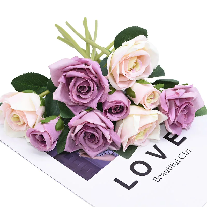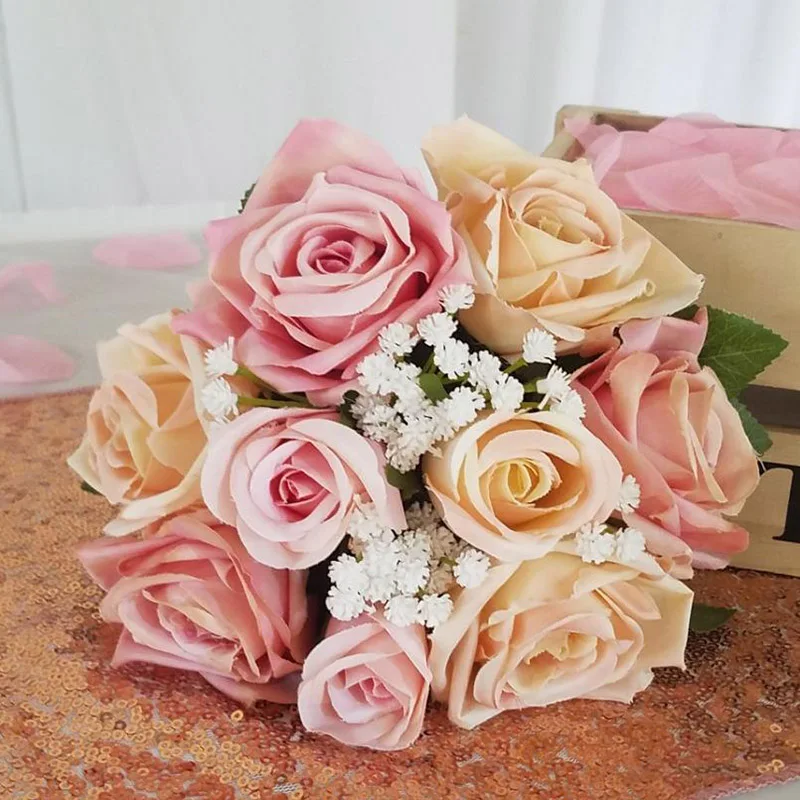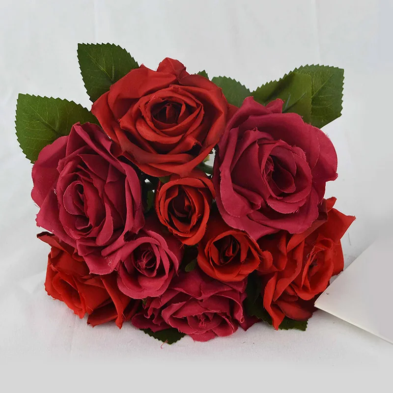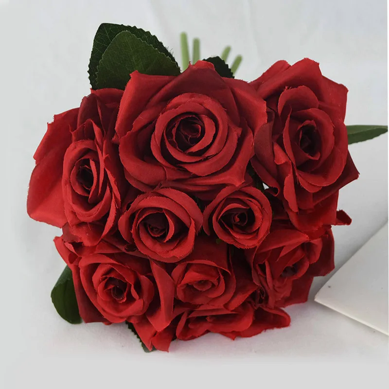 9 шт.лот искусственные розы, цветы, Шелковая Роза, цветок для домашней вечеринки, Искусственный Свадебный букет, рождественские цветы