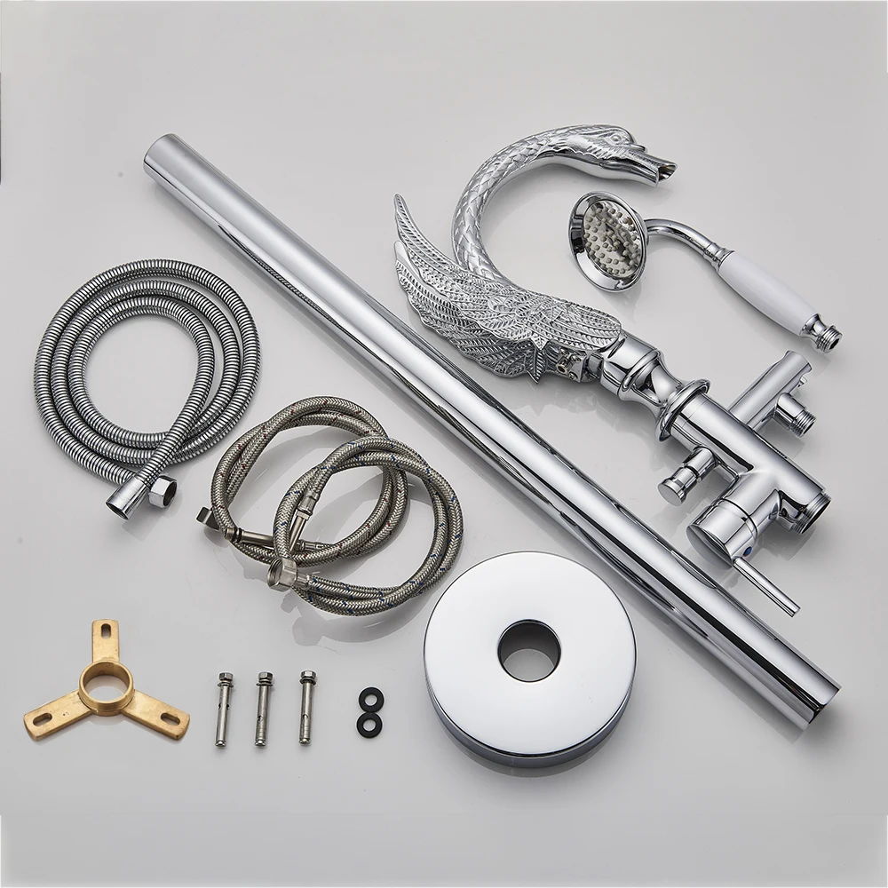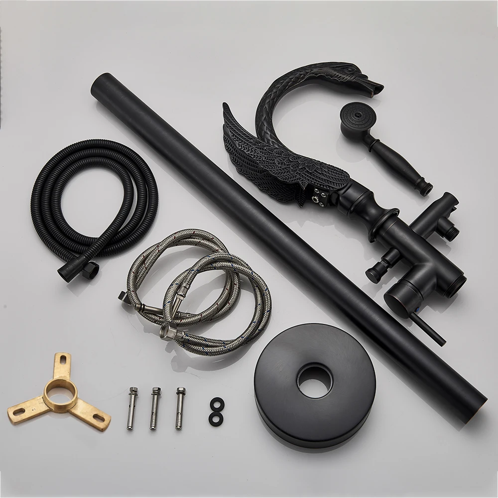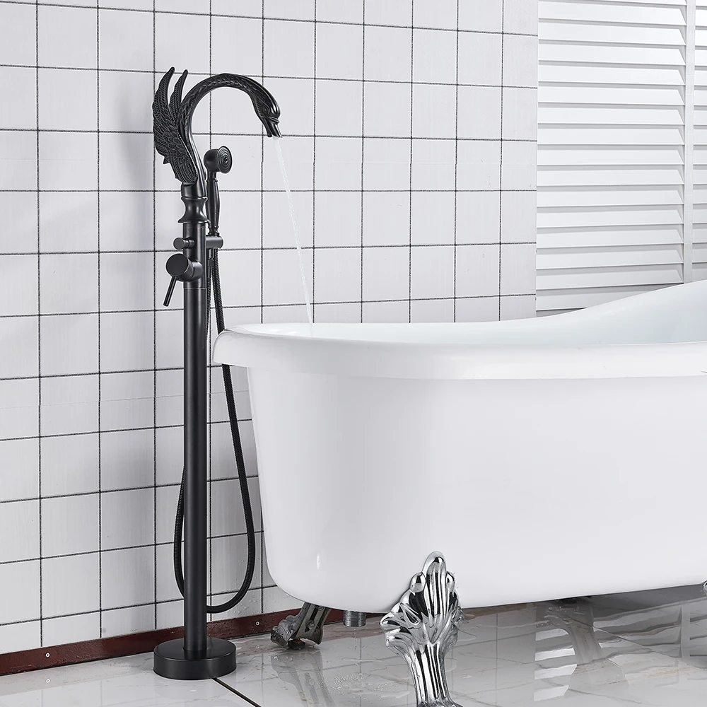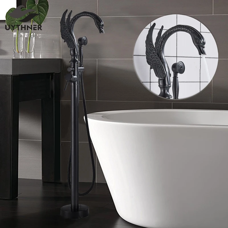 Смеситель для ванны Uythner, черный кран для горячей и холодной воды, напольный Монтажный набор