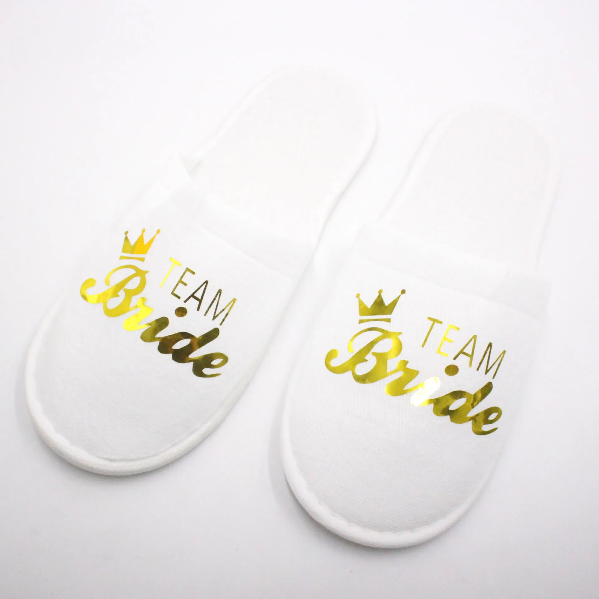 Новинка; 1 пара; Свадебные шлепанцы с золотыми блестками и надписями; Женские домашние Нескользящие шлепанцы с сердечками для подружки невесты; Высокое качество