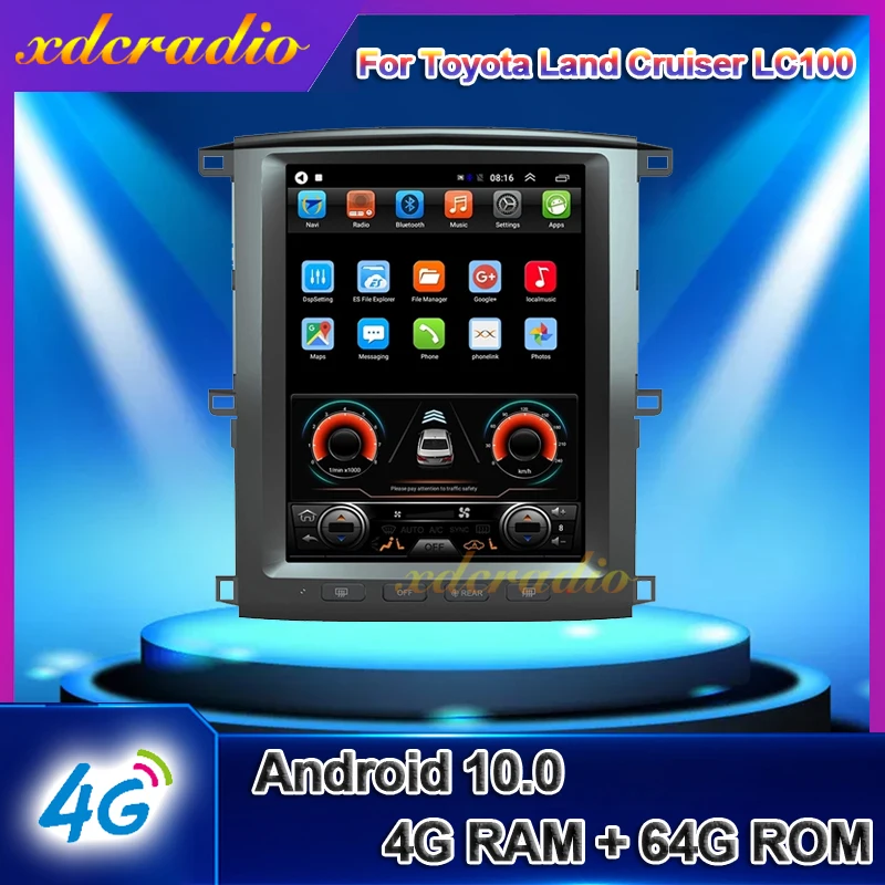 Автомагнитола KiriNavi с вертикальным экраном, мультимедийный плеер в стиле Тесла, 12,1 ", Android 10,0, GPS, для Toyota Land Cruiser LC100, 2003-2007