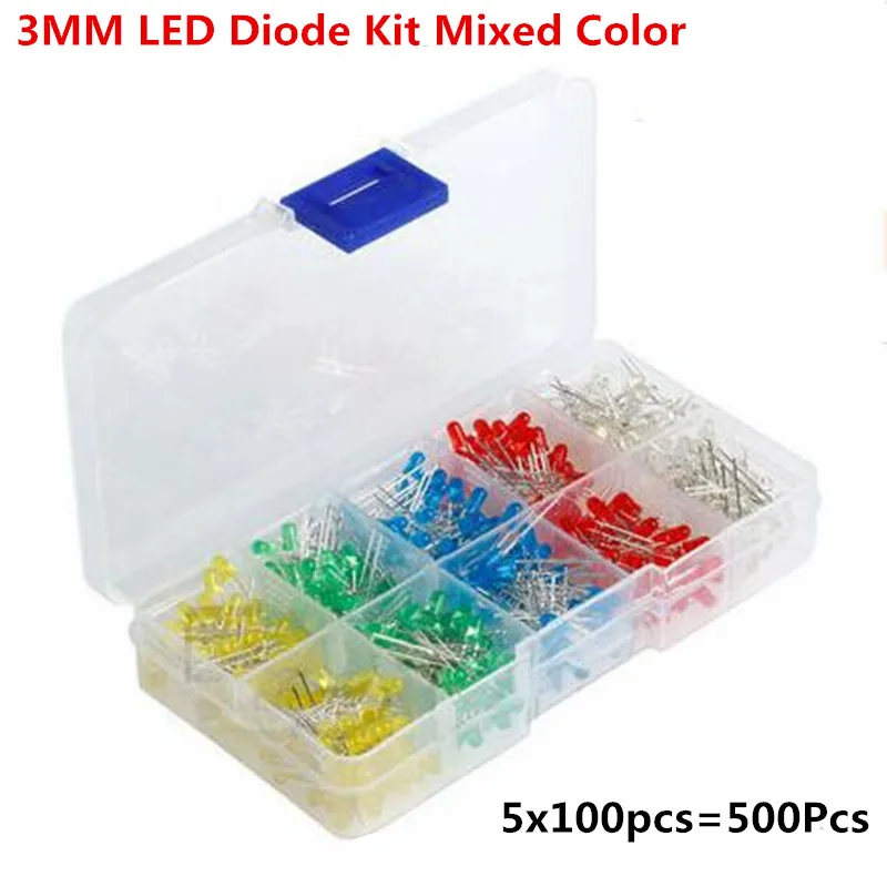 5x100 шт = 500 шт 3 мм светодиодный набор диодов смешанных цветов красный зеленый желтый синий белый + коробка