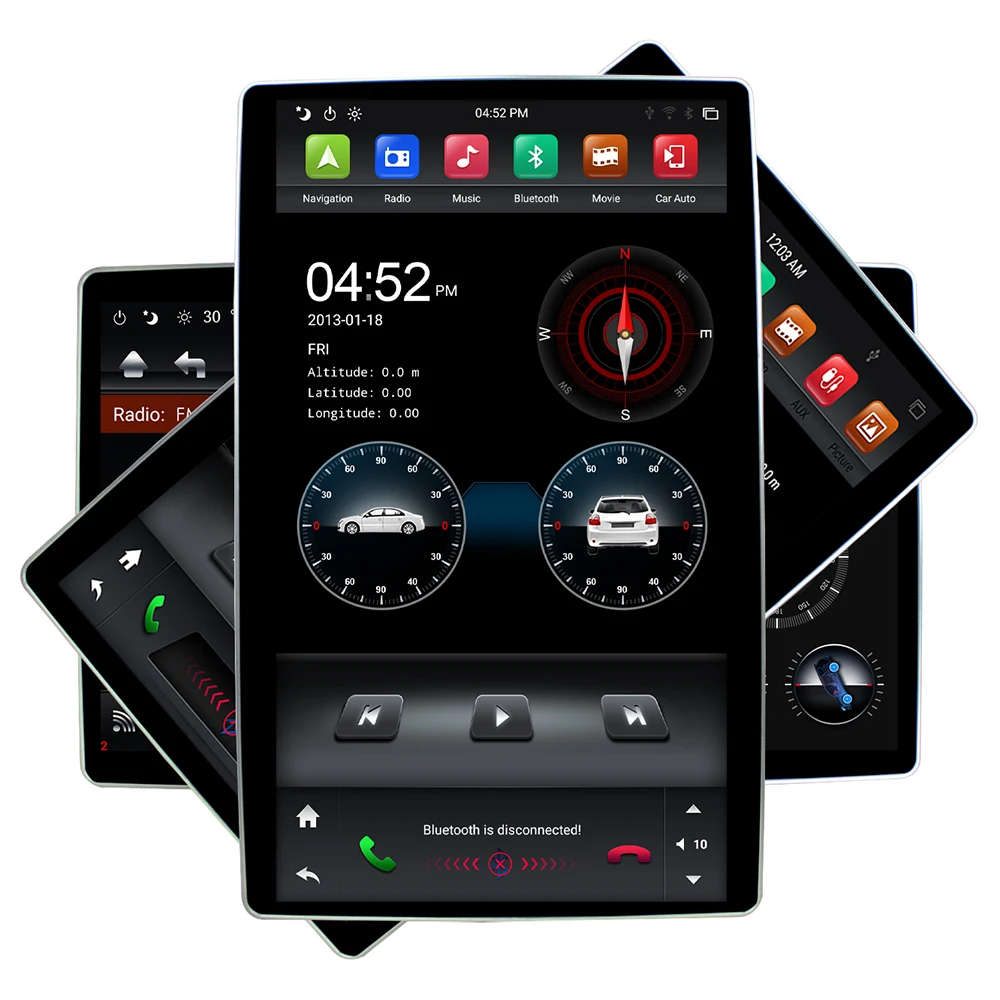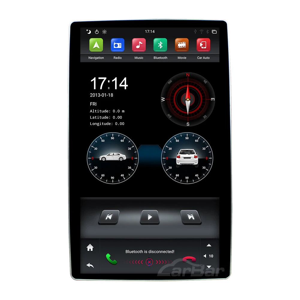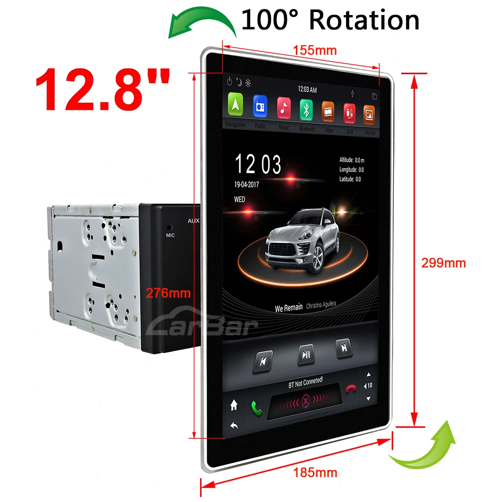 Carbar 12,8 "Tesla Style Dual Two 2 Din универсальный Головной блок Android автомобильный радиоприемник DVD GPS навигатор плеер с вращающимся экраном