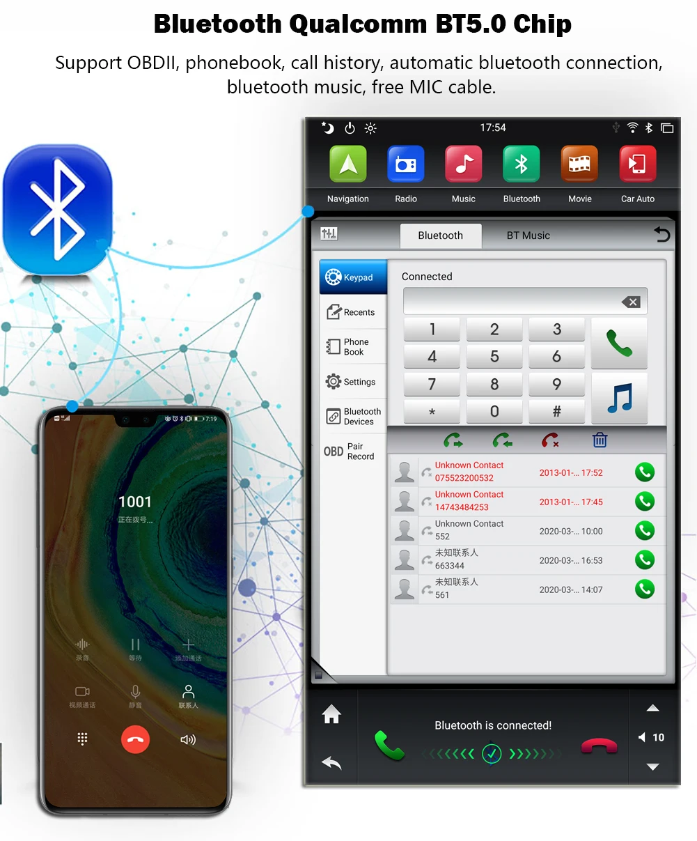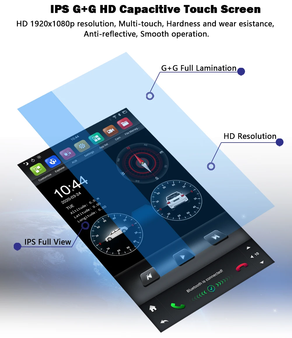 12,8 дюймов Большой экран в такой обуви вы будете чувствовать себя разный опыт вождения, на экране может быть повернут вверх и вниз, левые и правые, угол поворота 100 градусов. В режиме навигации по вертикальному экрану вы можете более четко определить дорогу, в ландшафтном режиме видео, которое вы видите, будет больше и реалистичнее. Devie также поддерживает функцию PIP, которую можно воспроизводить двумя приложениями на одном и том же интерфейсе.