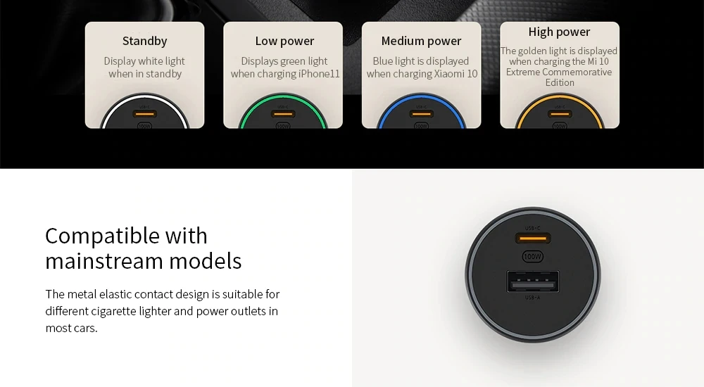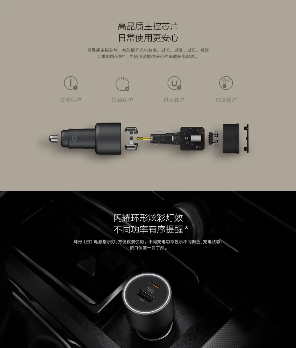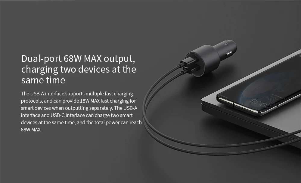 Оригинальное автомобильное зарядное устройство Xiaomi, быстрая зарядка USB-C, 100 Вт, макс. USB-A, 18 Вт, для смартфонов iPhone, Samsung, Huawei, Xiaomi 10