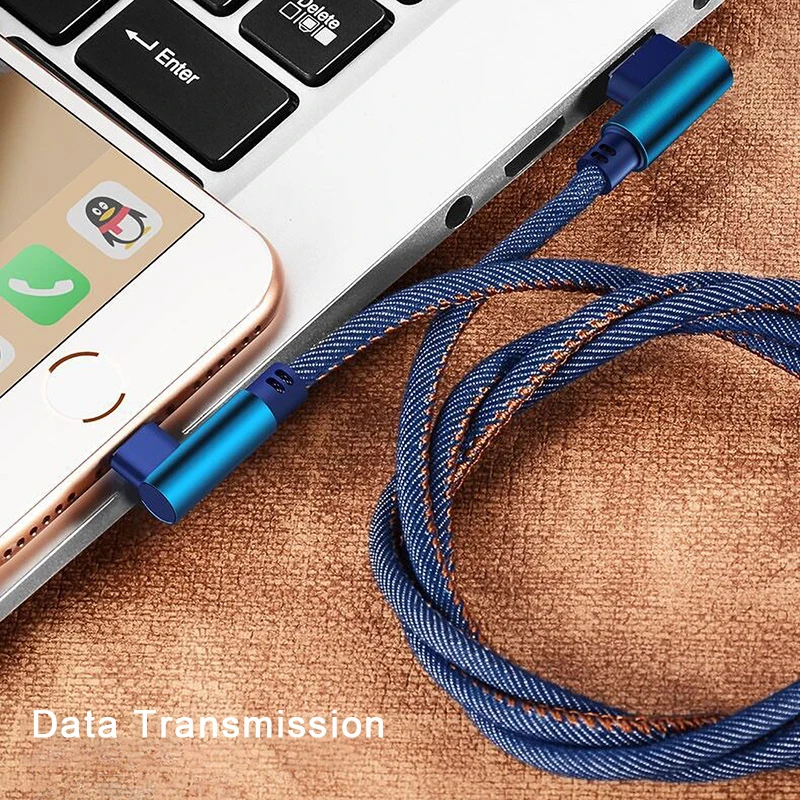 USBC кабель для быстрой зарядки деним 2.4A 90 градусов Тип C шнуры ...