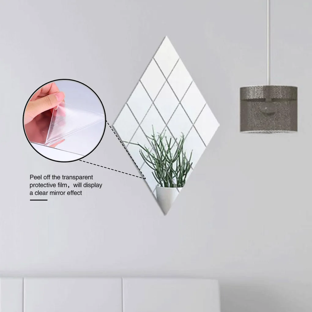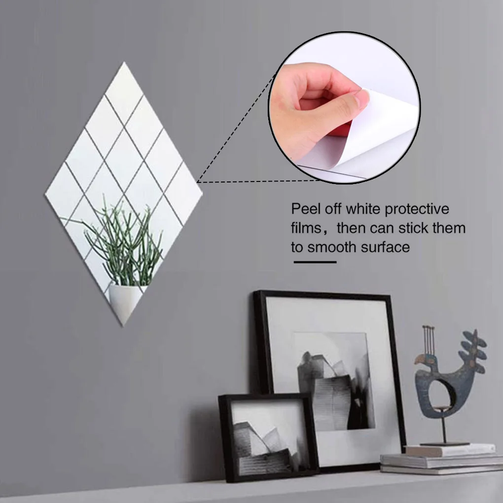 Зеркальные настенные наклейки, квадратные самоклеящиеся акриловые з...