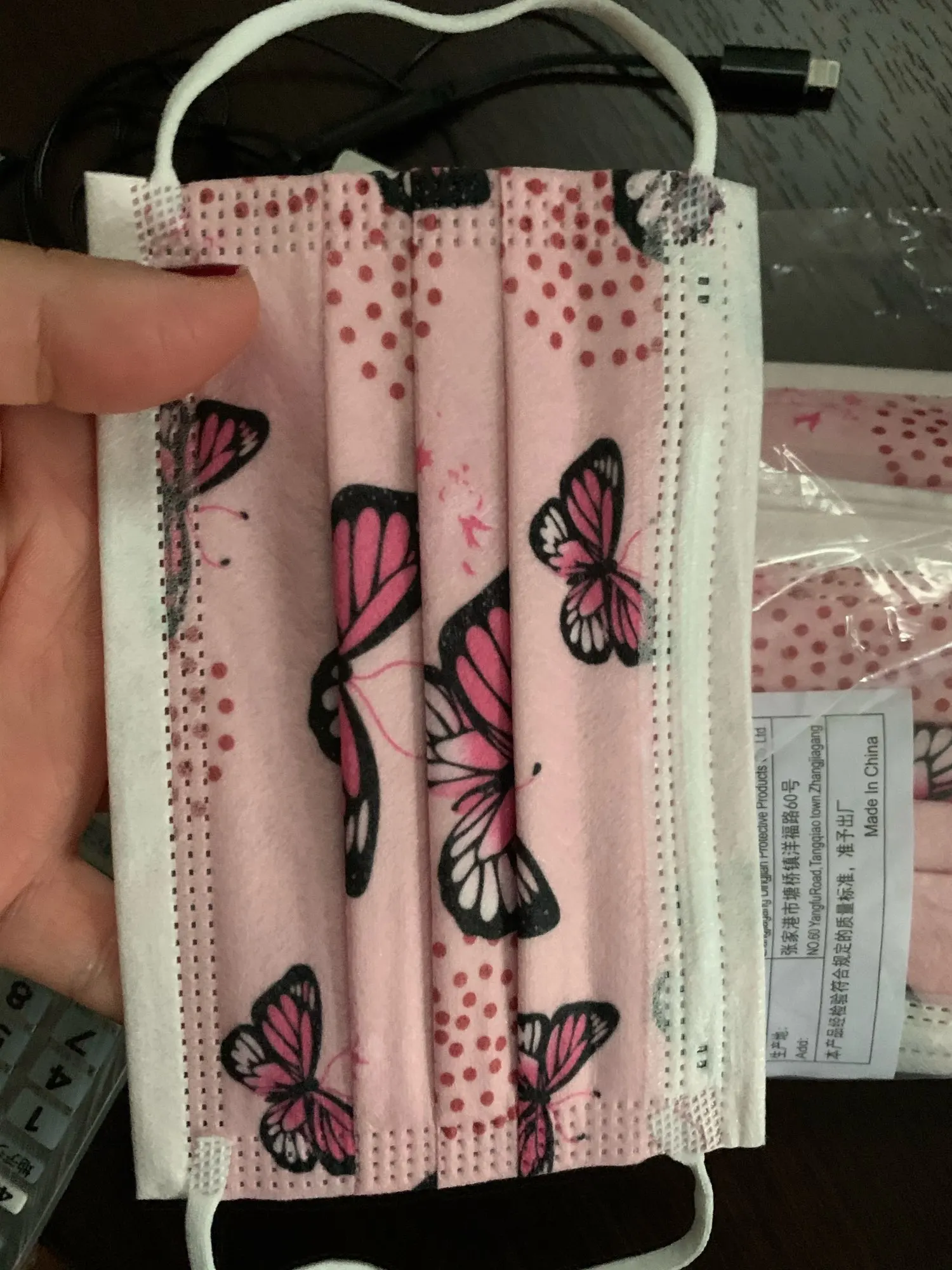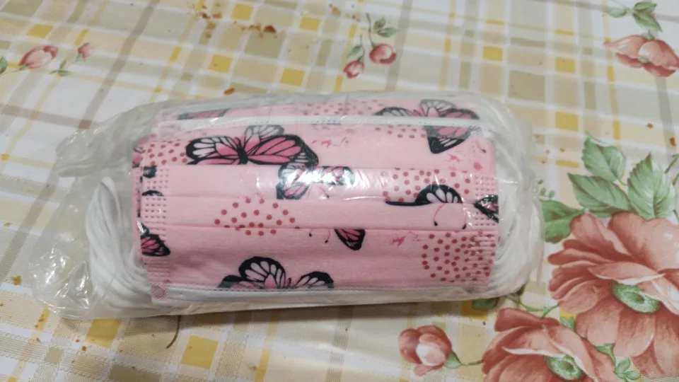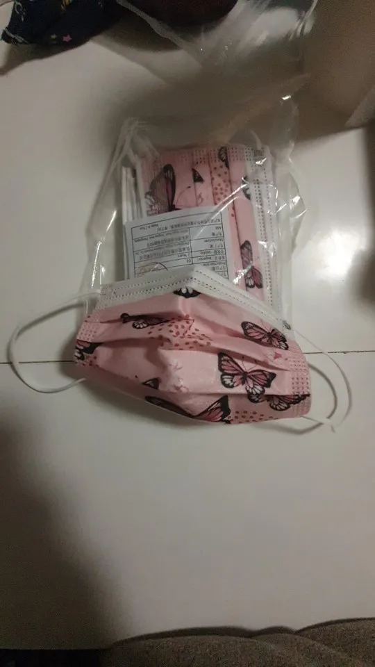 Маска детская одноразовая, с принтом в виде розовой бабочки, 3 слоя, 102050100 шт.