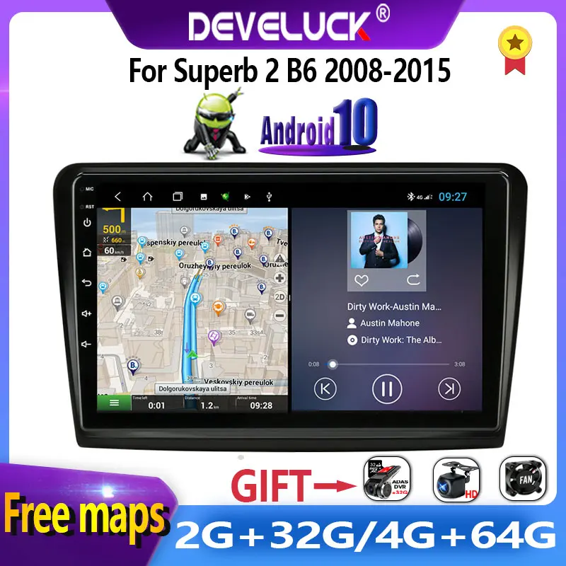 Автомагнитола 2 din, Android 10,0, мультимедийный видеоплеер для Skoda Superb 2 B6 2008-2015, стерео, GPS-навигация, RDS DSP + 48EQ IPS