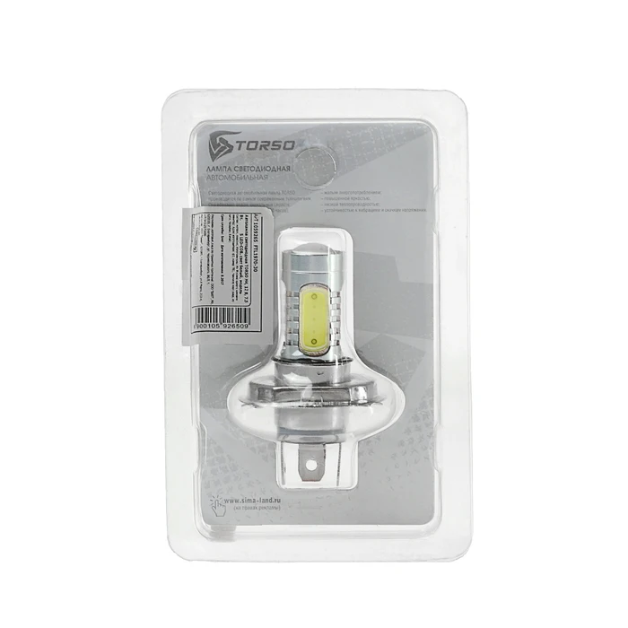 Автолампа светодиоднаяTORSO H4, 12 В, 7.5 Вт , 5 LED-COB, свет белый 1059265