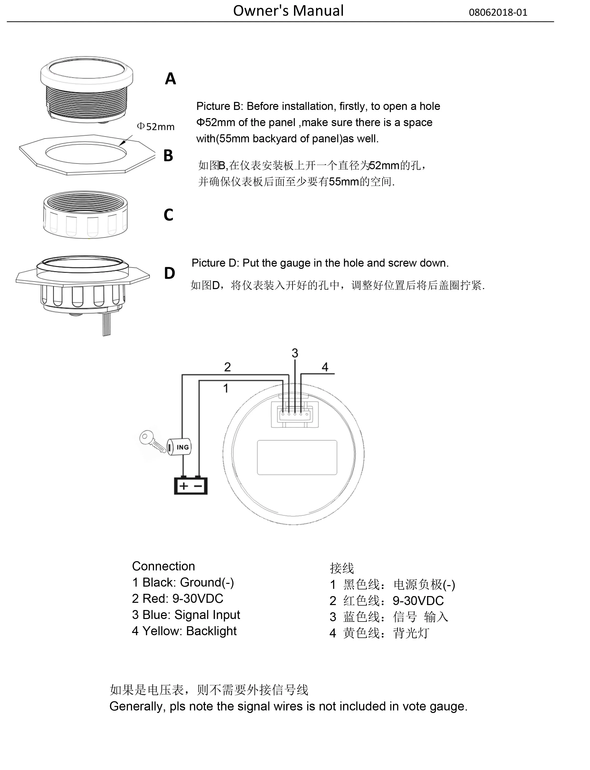 1 х манометр для масла 1 x Жгут Проводов Руководство по эксплуатации-1 шт.