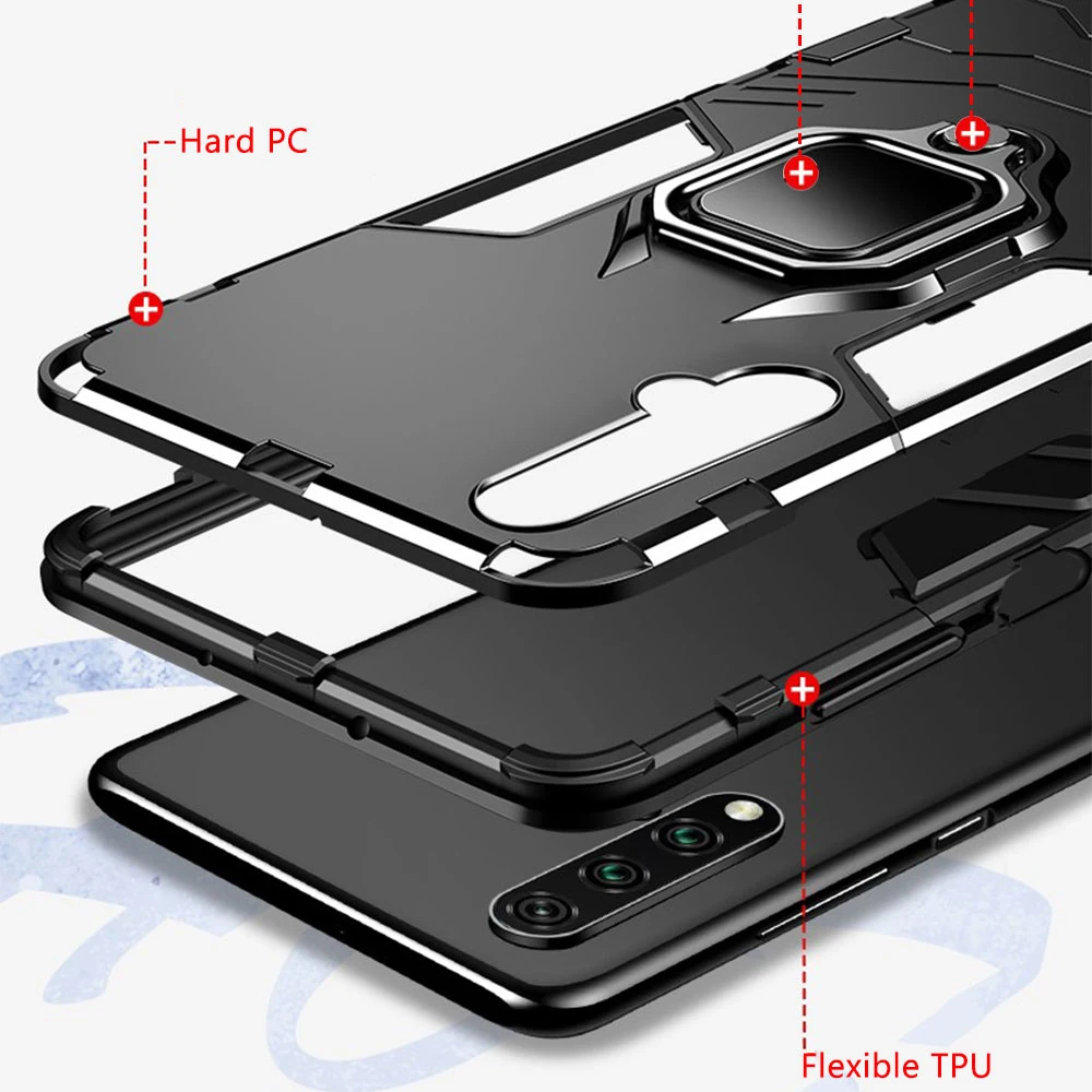 Автомобильный чехол для Realme 6i, противоударный с магнитным кольц...