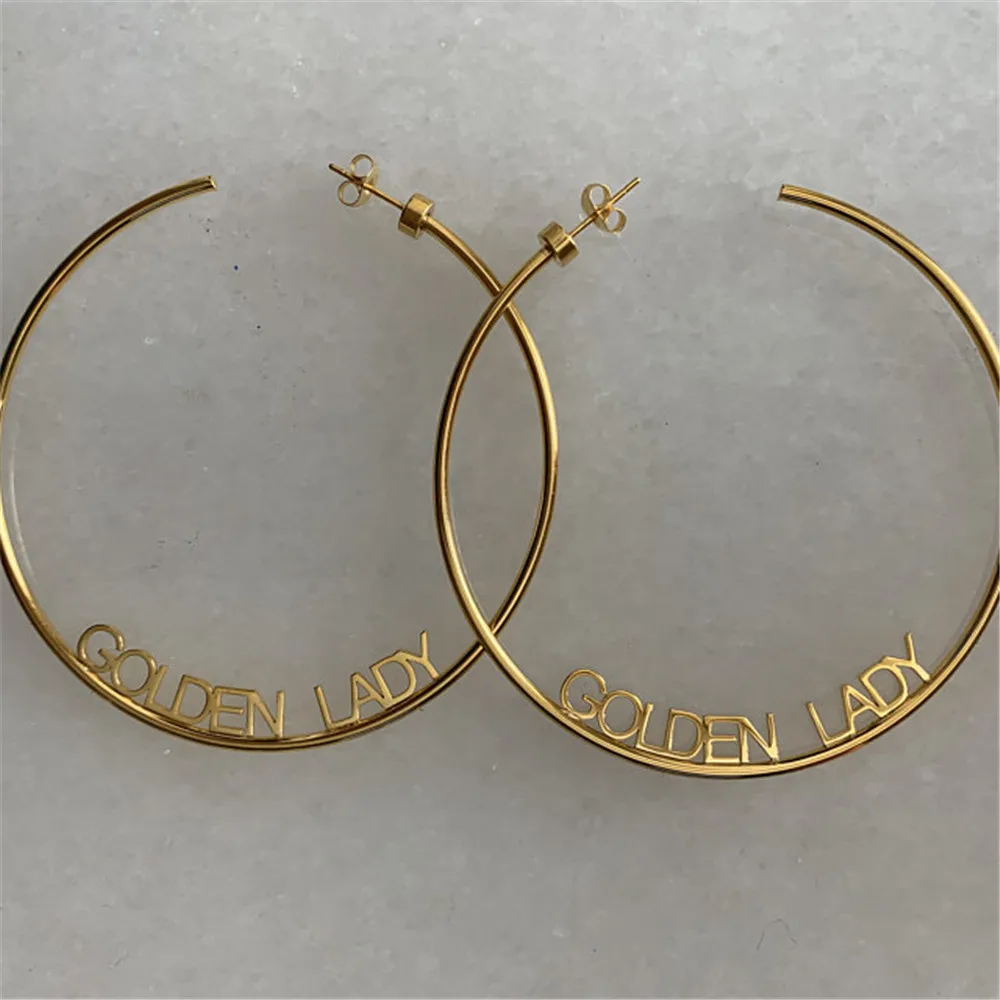 Большие серьги Sherman из нержавеющей стали с именем на заказ, боль...