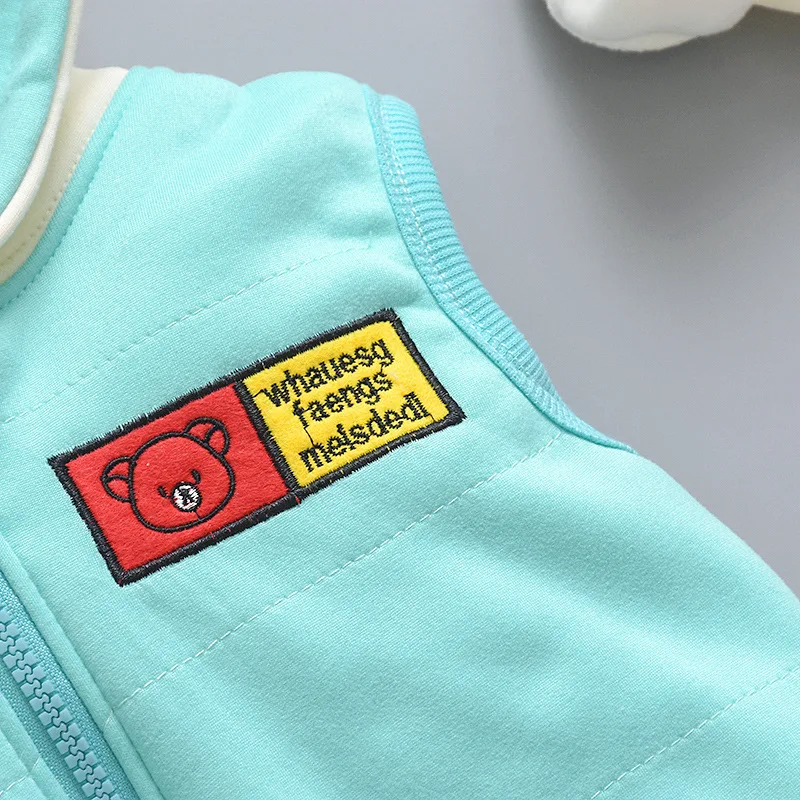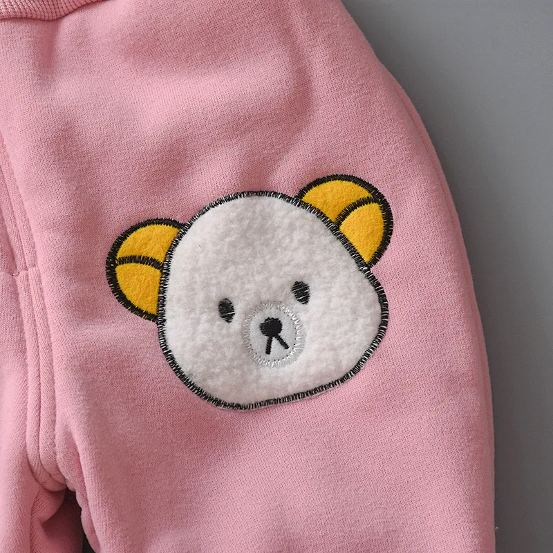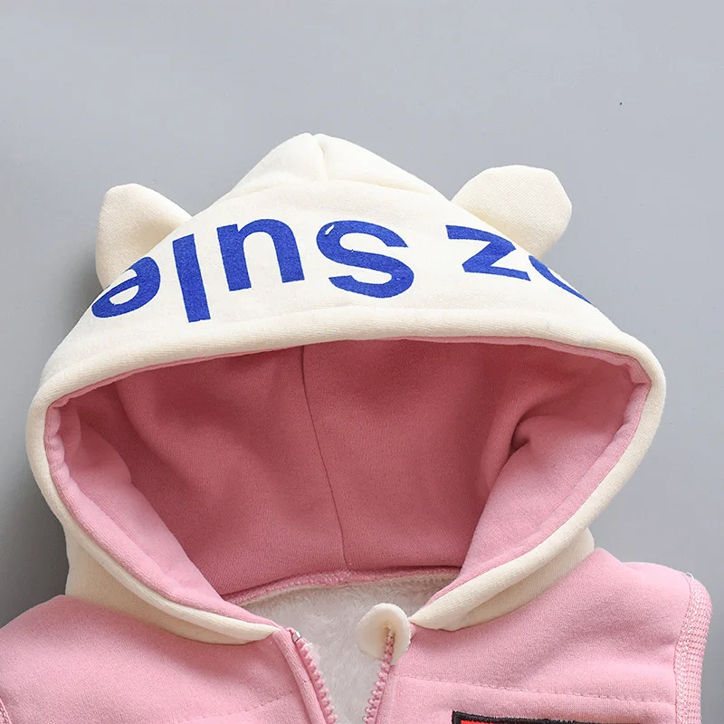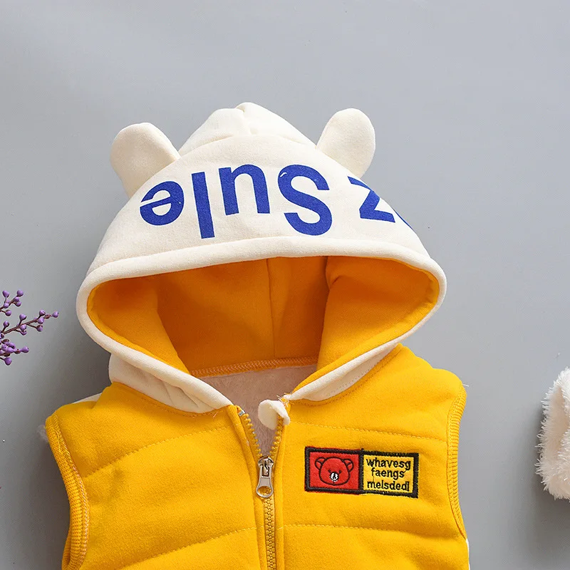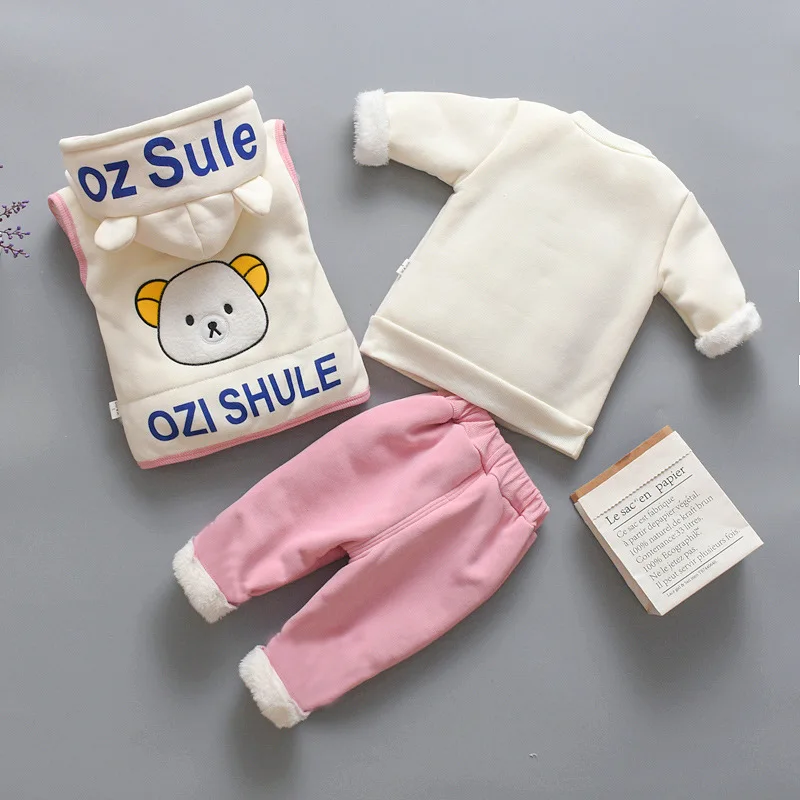 Новый Зимний Детский костюм для малышей, жилет на молнии с капюшоном и мультяшным медведем для мальчиков и девочек, комплект детской одежды из трех предметов