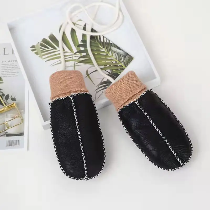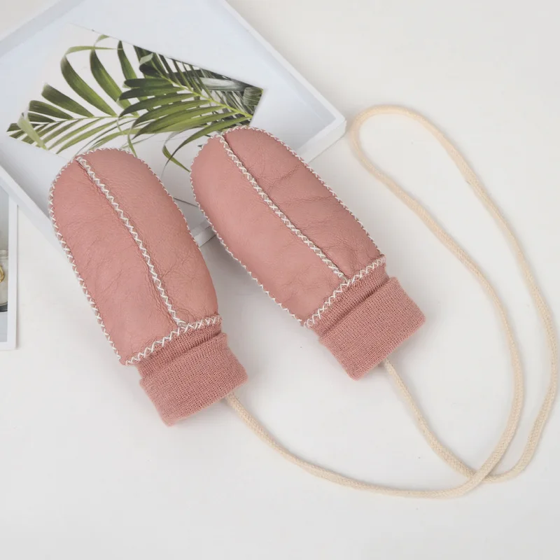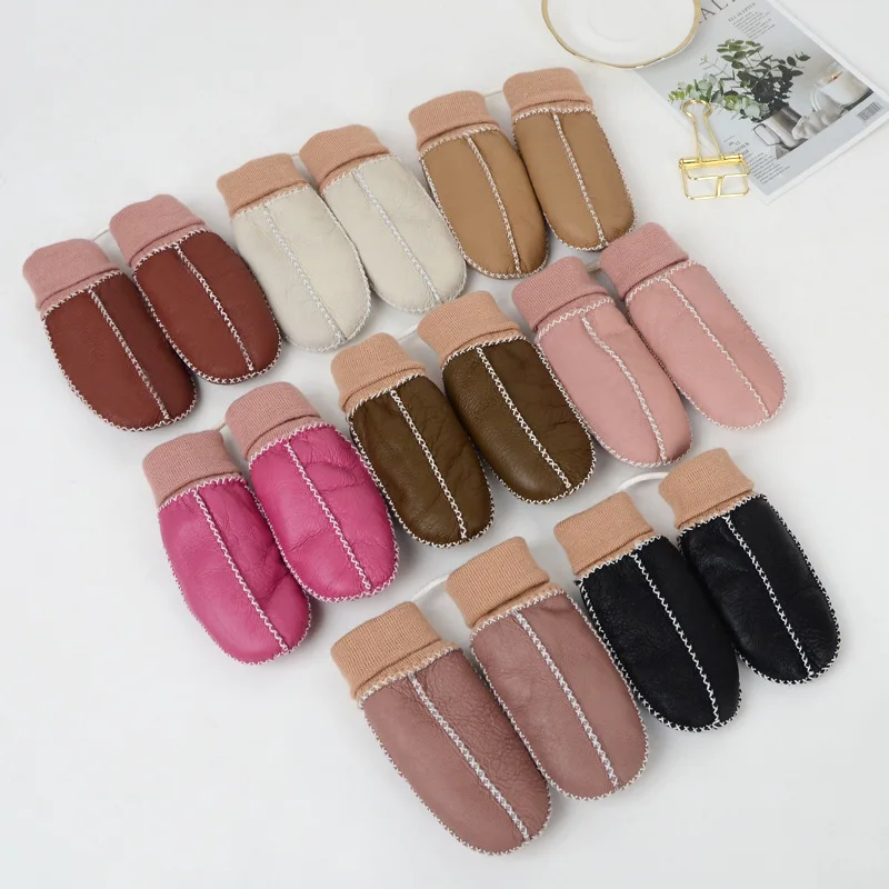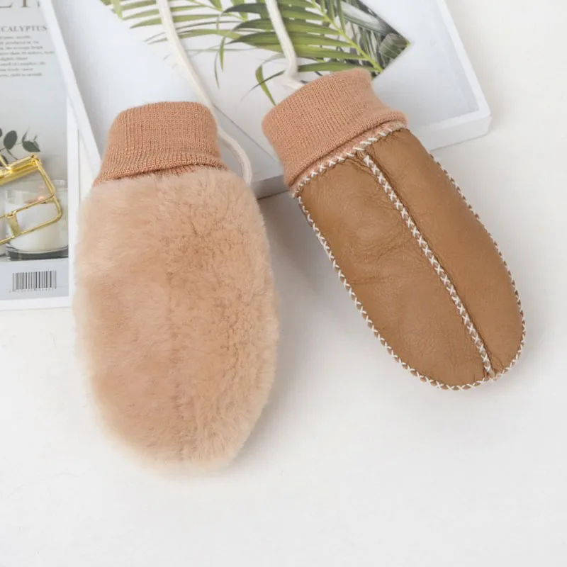 Детские Лыжные зимние теплые перчатки, детские перчатки из натуральной кожи с овечьим мехом для мальчиков и девочек, ручные супер теплые ветрозащитные перчатки
