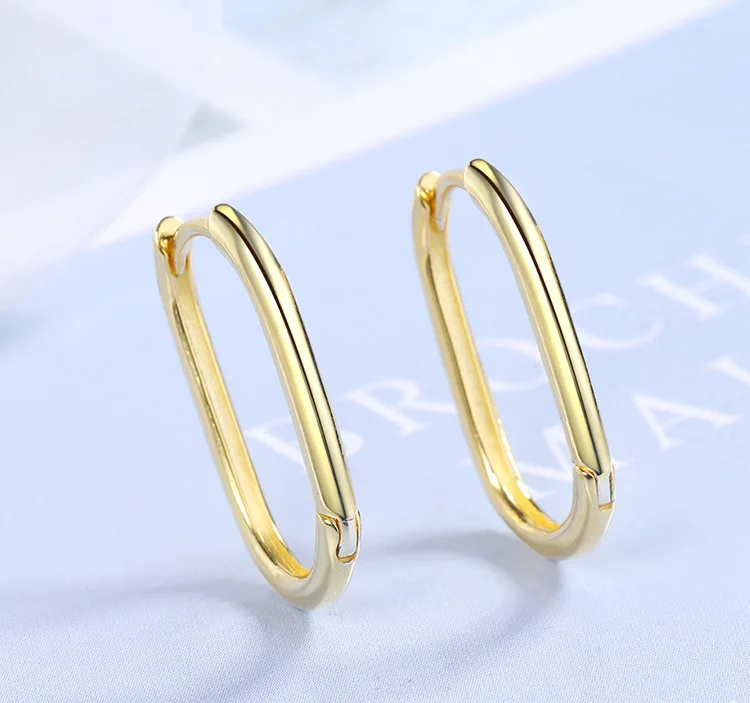 Геометрические эллиптические серьги-кольца для женщин, гладкие медн...