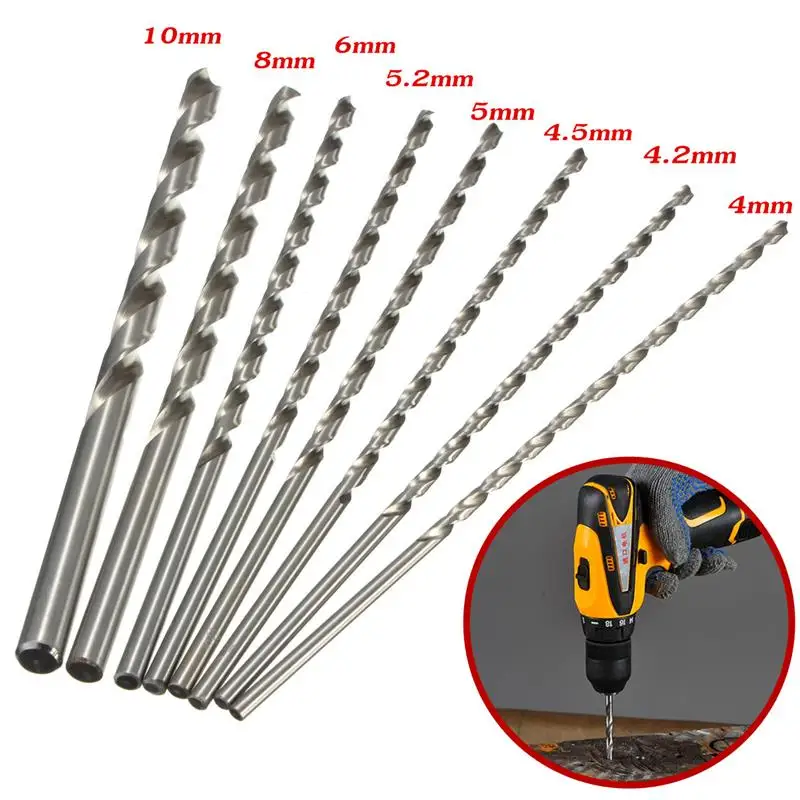 Сверло спиральное сверхдлинное из быстрорежущей стали, 200 мм, 4 мм, 5 мм, 6 мм, 8 мм, 10 мм, 1 шт.