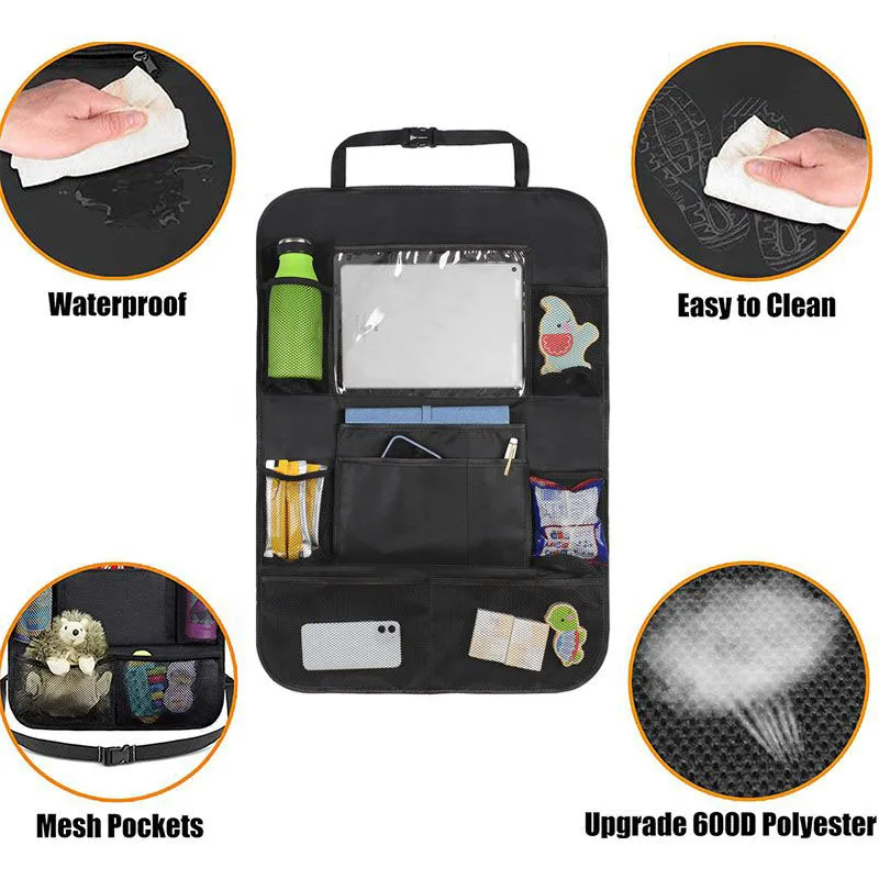 Автомобильный Органайзер на заднее сиденье с держателем для планшета с сенсорным экраном, с несколькими карманами, коврики для пинания, защитные чехлы на заднее сиденье автомобиля для малышей