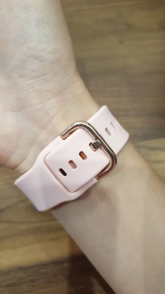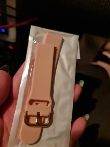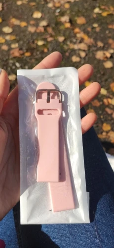 Фото прикрепляю, но цветопередача даже при дневном свете не верная, цвет не как на фото. Доставка 3 недели до Нижнего Новгорода. Полностью соответствует описанию. Качество порадовало. Резина не дубовая, как бывает на некоторых плохих браслетах, а мягкая и приятная на ощупь. Прицеплюшки к часам встроены внутрь браслета и не будут выпадать. Цвет немного отличается от картинки. не столь припудренный, больше нежно - розовый. Но всё-равно довольна!