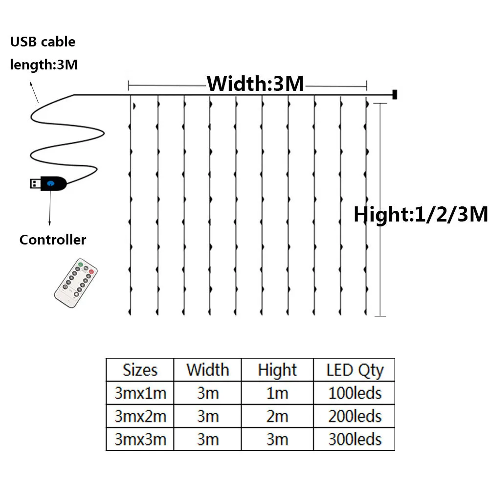 Размер: ширина: 3 м * Высота: 3 м с 300 светодиодами