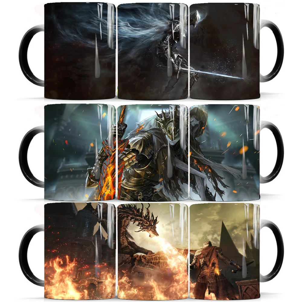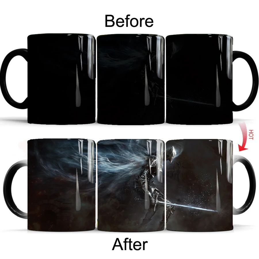 Волшебная кофейная кружка Dark Souls, меняющая цвет, керамическая кружка 11 унций, большая чайная чашка для путешествий, подарочные кружки для мальчиков и друзей