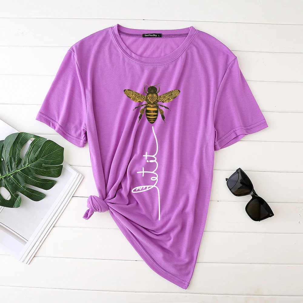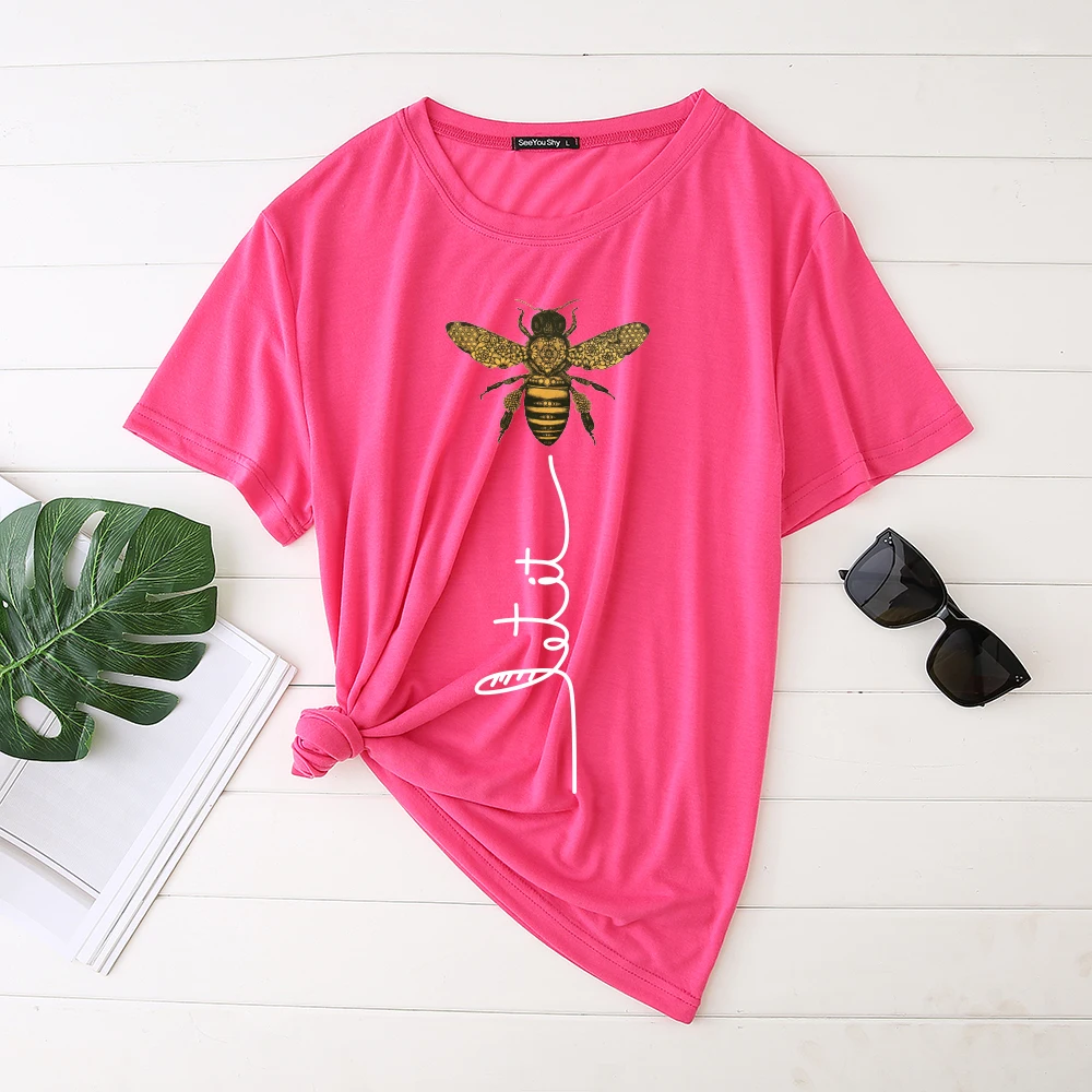 Женская футболка с принтом пчелы Seeyoushy Kawaii, летняя футболка оверсайз в стиле Харадзюку с коротким рукавом, повседневные свободные женские топы с графическим принтом