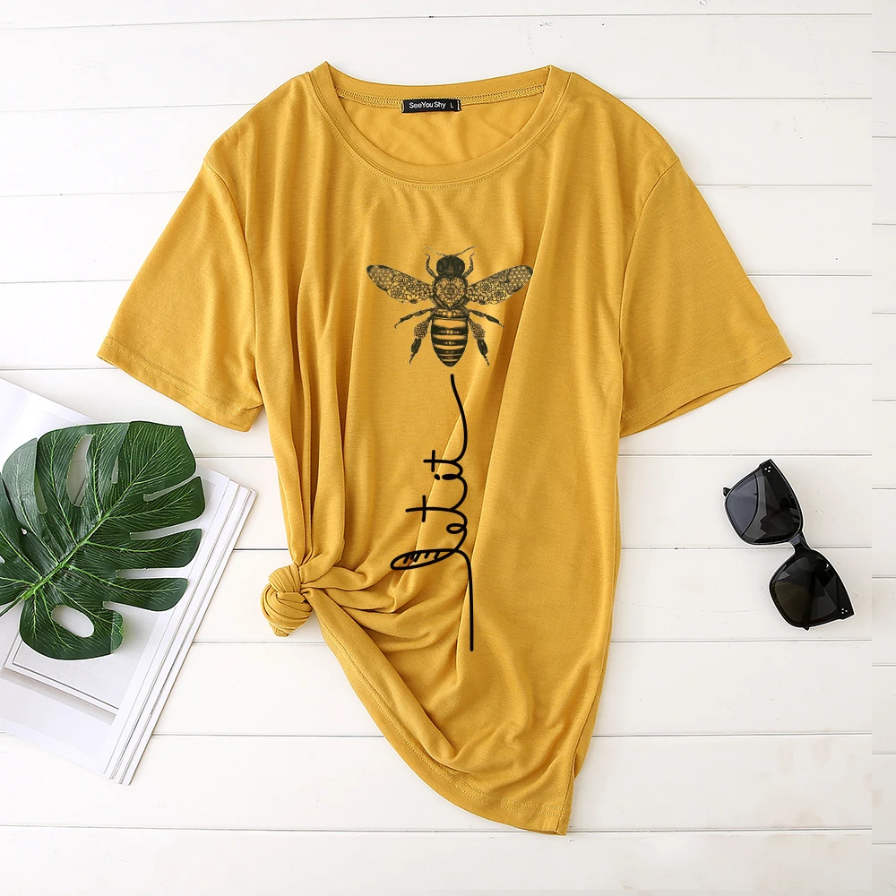 Seeyoushy Kawaii женская футболка с принтом пчелы Харадзюку с коротким рукавом оверсайз летняя футболка повседневные свободные графические женские топы
