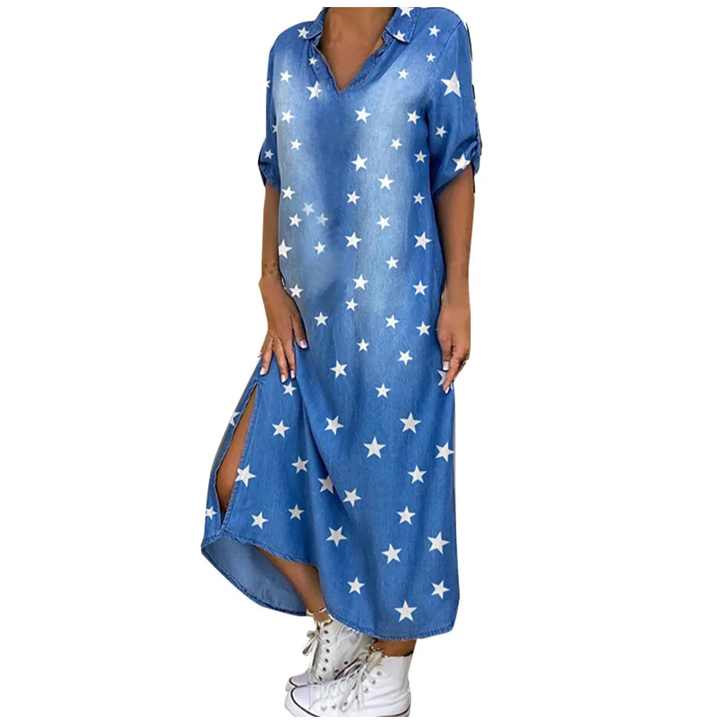 @ Женское джинсовое платье большого размера, повседневное длинное платье-рубашка в горошек с длинным рукавом и круглым вырезом, праздничное длинное платье, платья Хара Juku 2020