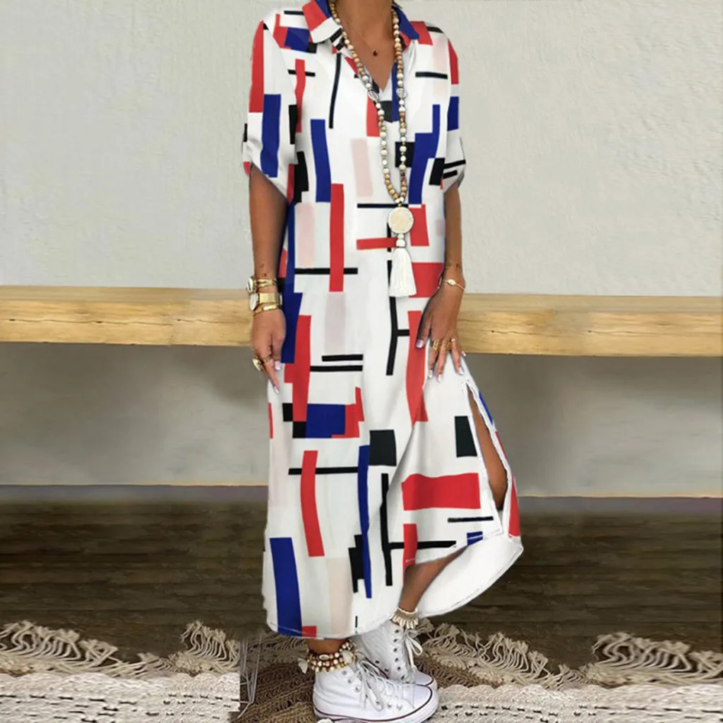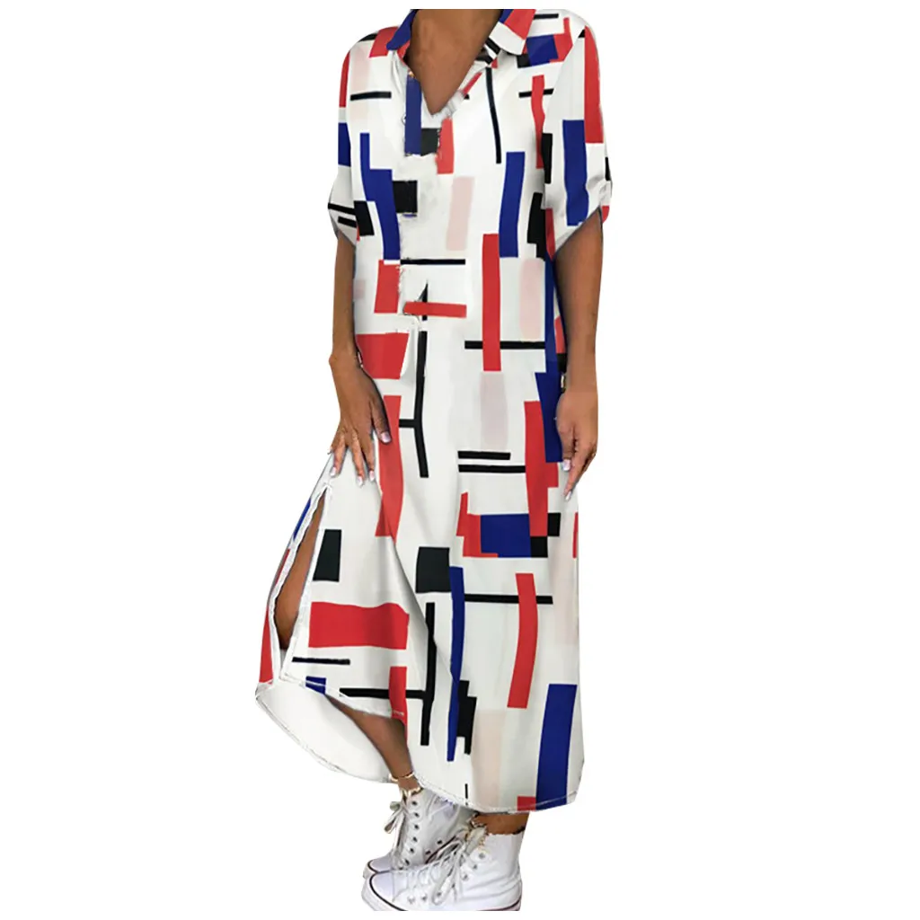 Модное женское Повседневное платье-рубашка с длинными рукавами и круглым вырезом больших размеров