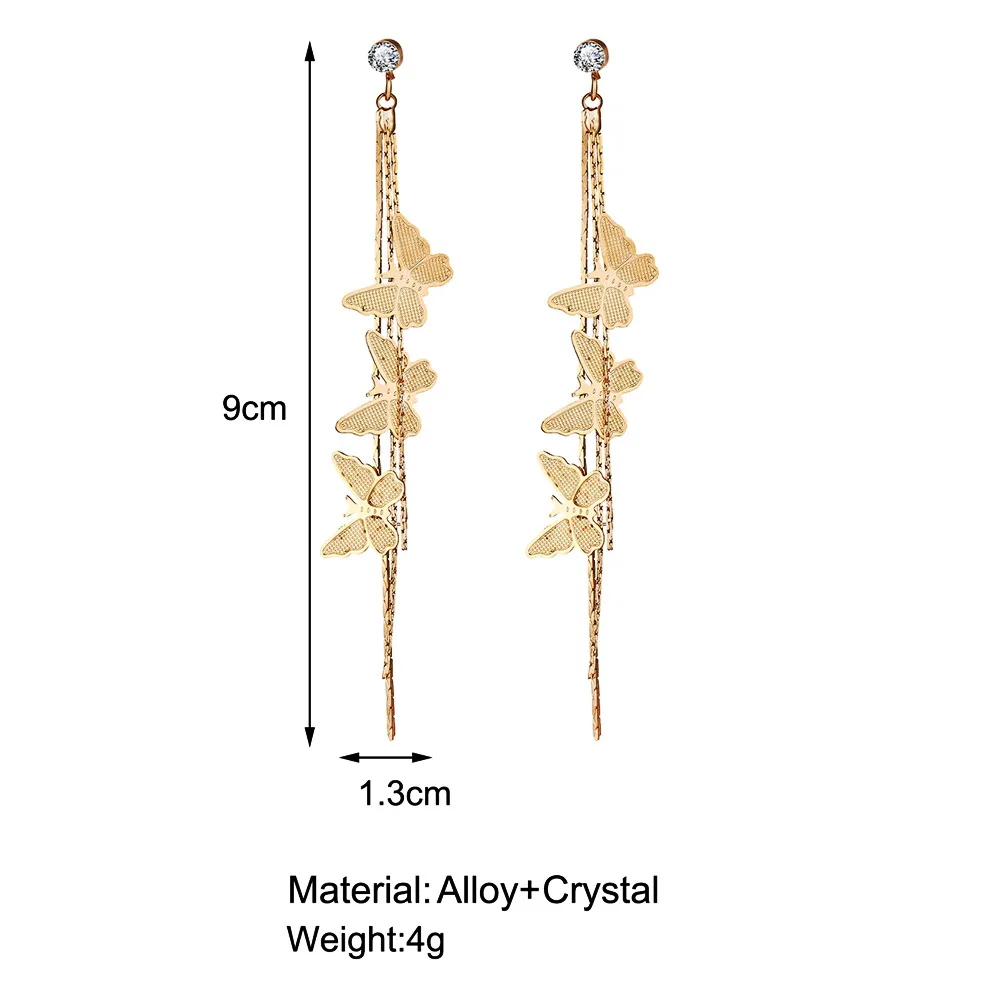 Fashion Women Jewelry Butterfly Earrings Long Tassels Eardrop Femal...
