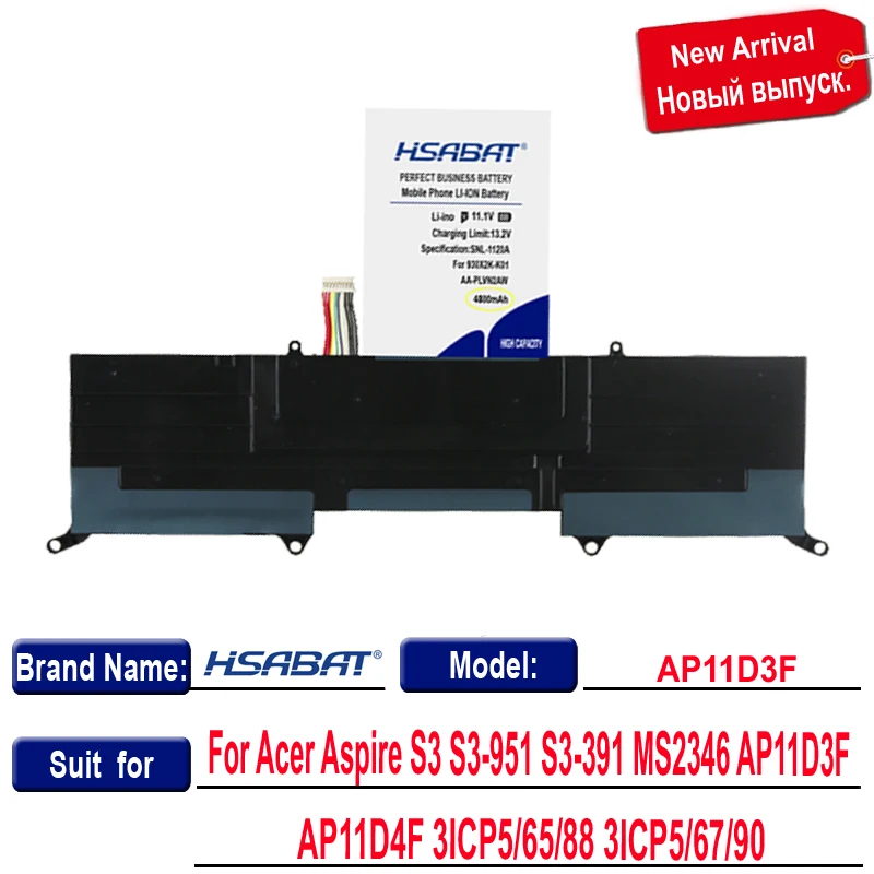 Аккумулятор HSABAT AP11D4F, AP11D3F, 4800 мА ч, для ACER Aspire S3 S3-951, S3-951-2464G24iss, S3-951-6464, S3-951-6646, MS2346
