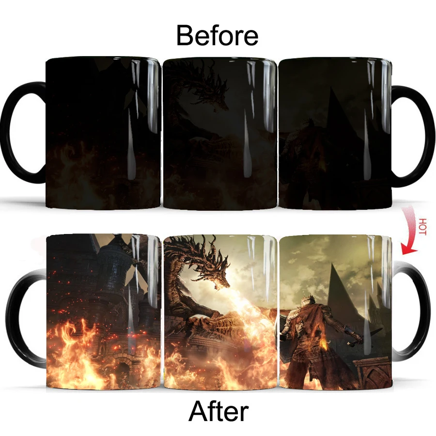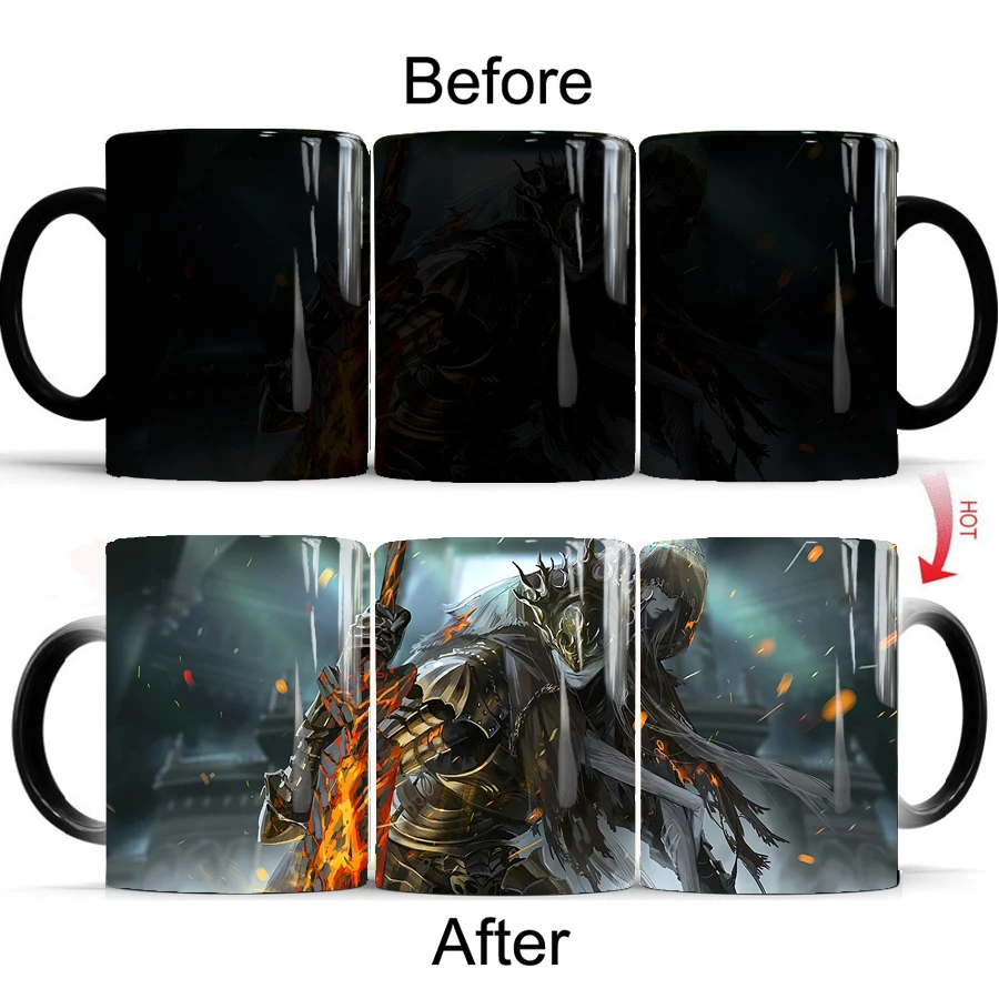 Керамическая кофейная кружка Dark Souls, 350 мл, меняющая цвет дорожная чашка для чая, для мальчиков, друзей, подарок на день рождения, кружки