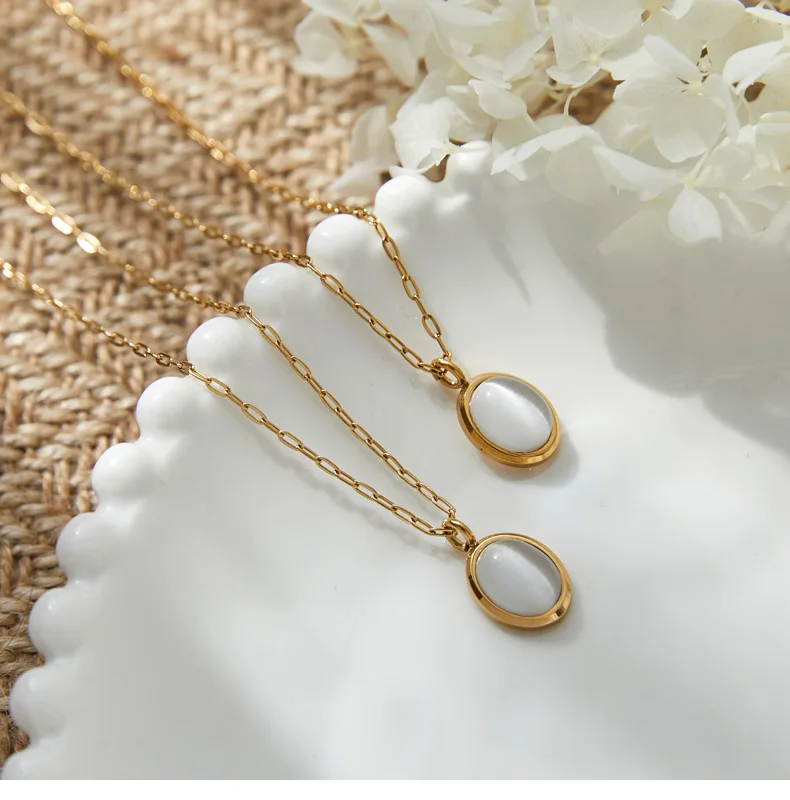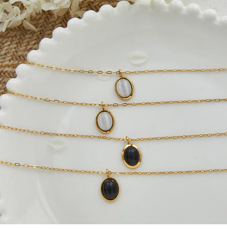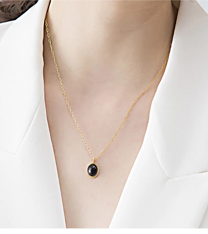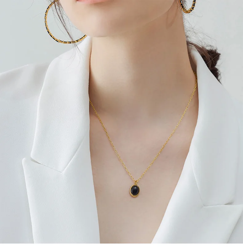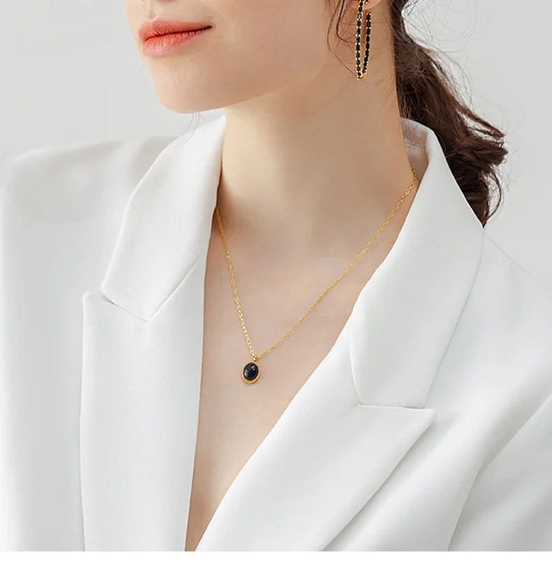 Женская цепочка из нержавеющей стали с овальным опалом и черным ониксом
