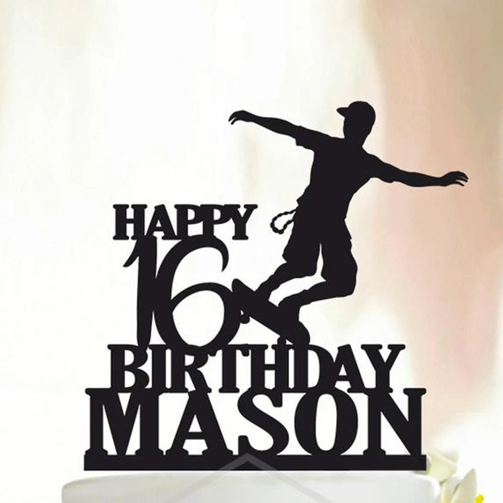 Персонализированный Топпер для торта на день рождения для скейтборда с именем возраст, топпер для торта на день рождения для мальчиков, украшение торта на день рождения