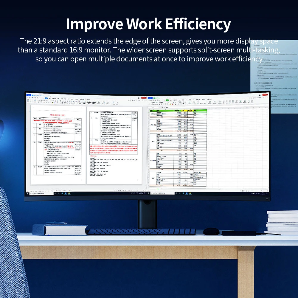Особенности:21:9 широкоугольный панорамный видИгровой интерфейс 21:9 обеспечивает на 30% более широкий обзор по сравнению со стандартными 16:9 мониторами. Более широкое поле зрения позволяет вам увидеть в первую очередь в игровых разработках, дает вам преимущество, особенно в реальном времени и в шутерах от первого лица.Ультра-высокое разрешение, высокая яркость и высокая контрастностьРазрешение Ultra HD 3440*1440 раскрывает изысканно реалистичные детали в каждом уголке сцены. С яркостью до 300 нит и высоким коэффициентом контрастности 3000:1 монитор отображает четкие, яркие изображения от ослепляющего белого до полуночного черного.1500R Экстрим кривизныИзогнутый экран создает меньший визуальный угол наклона, так что каждая точка на экране почти не менее удалена от ваших глаз, которые могут уменьшить визуальные искажения и дать вам более реалистичный обзор каждого угла.Высокая частота обновления 144 ГцВысокая частота обновления 144 Гц и время отклика 4 миллисекунды эффективно уменьшают заикание и ореолы в играх. В стрельбе, которые требуют быстрой реакции, это делает его легче точно зафиксировать и ударить по вашей цели.Технология свободной синхронизации AMDТехнология AMD Free-Sync обеспечивает синхронизацию изображения с высоким входом частоты кадров, уменьшает заикание, разрывы экрана во время игр, улучшает визуальную плавность, дает большое преимущество при игре в игры.Широкий цветовой охват 121% sRGBМонитор может отображать максимум 16,7 миллионов истинных цветов в насыщенной глубине цвета, а до 121% sRGB широкая цветовая гамма показывает изысканные цвета в ярких деталях. Выдающееся цветовое исполнение создает реалистичные изображения. В сочетании с изогнутым панорамным экраном 1500R обеспечивает более захватывающие аудио-визуальные развлечения.Захватывающий опытТонкий ободок диаметром 2 мм не только увеличивает соотношение экрана к корпусу, но и уменьшает отвлечение края экрана. Ультраширокое изображение 21:9 также ближе к размерам экрана кинотеатра. В сочетании с панорамным изогнутым экраном, это обеспечивает качество просмотра в кинотеатре, что облегчает потерю себя в фильме.Улучшает эффективность работыОдин экран разбивается на несколько экранов, чтобы сделать многозадачность легкой. Соотношение сторон 21:9 продлевает край экрана, дает вам больше места на дисплее, чем стандартный 16:9-монитор. Широкий экран поддерживает многозадачность разделенного экрана, поэтому вы можете открывать сразу несколько документов для повышения эффективности работы.Фильтрация синего светаПринять технологию для контроля и уменьшения синего света и мерцания-фильтрует высокоэнергетический синий свет для длительного четкого изображения, чтобы эффективно уменьшить напряжение глаз.Регулируемая подставкаОн поддерживает подъем, наклон, вращение и настенный подвешивание, не только отвечает профессиональным потребностям различных занятий, но также позволяет регулировать угол обзора для оптимального комфорта, чтобы эффективно предотвратить напряжение шеи.Простая установкаИнтерфейс установки дисплея принимает дизайн оснастки, и процесс установки требует только одной кнопки быстрого удаления винта. Конструкция магнитного всасывающего интерфейса уменьшает проблемы установки и разборки.Спецификация:Разрешение: 3440*1440Соотношение сторон дисплея: 21:9Эк