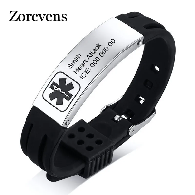 Новинка 2022, медицинские браслеты с гравировкой из нержавеющей стали и силикона, спортивные браслеты с идентификацией при экстренных ситуациях, аксессуары для мужчин и женщин