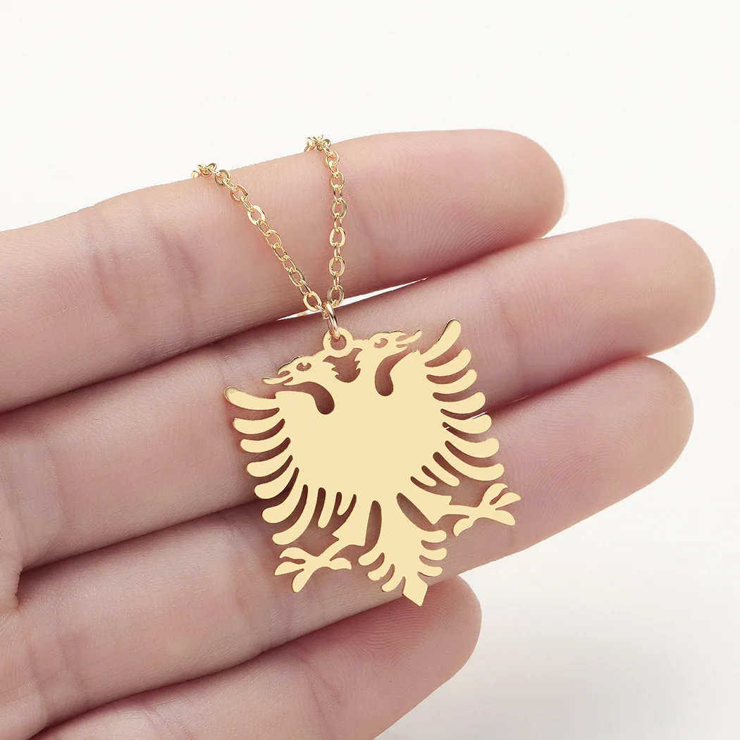 Ожерелье с двуглавым орлом в стиле панк Албания ожерелье в этническом ретро стиле из нержавеющей стали золотого цвета ожерелье с орлом птицей для мужчин и женщин ошейник