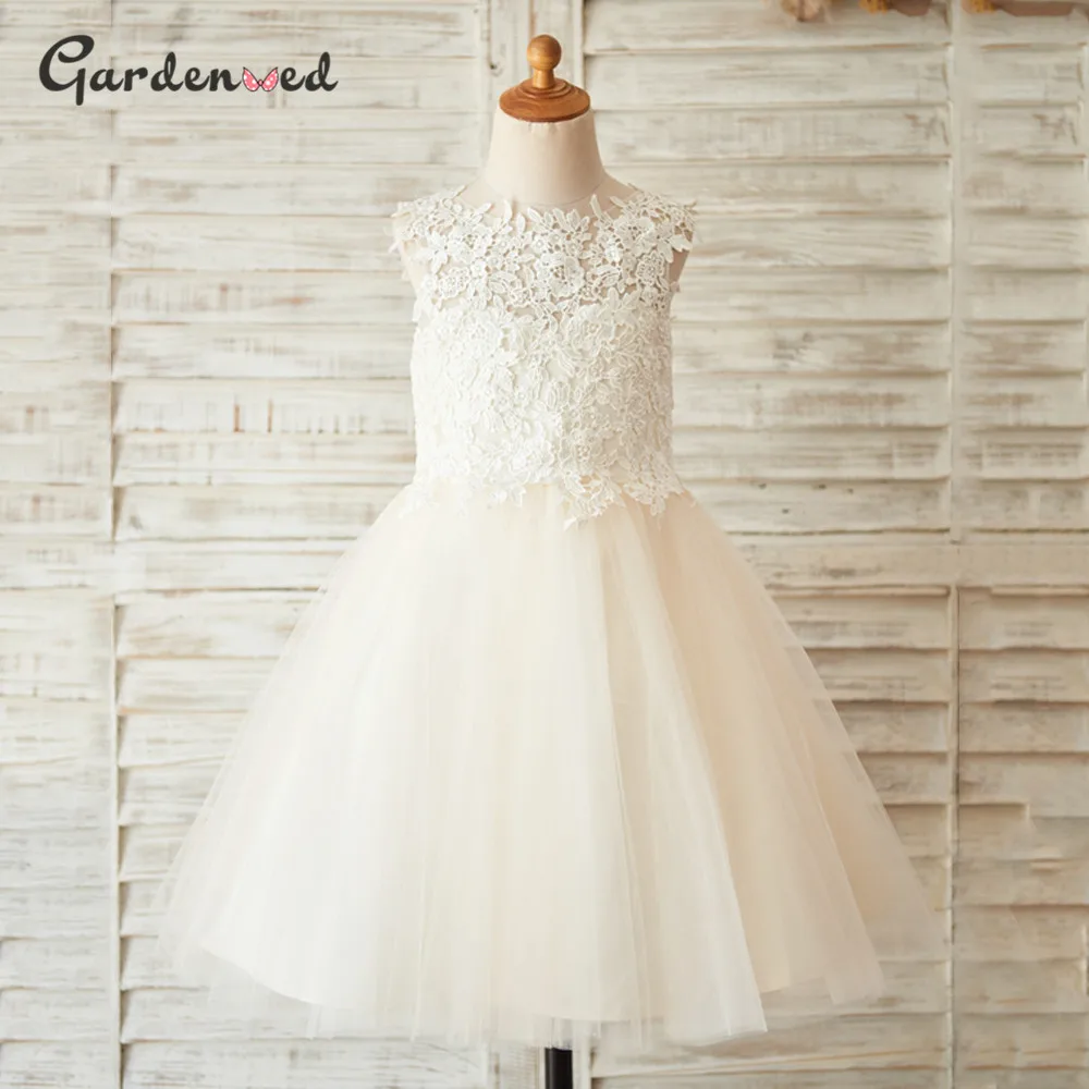 Тюлевое кружево цвета слоновой кости Платья с цветочным узором для девочек фатиновая юбка платье для первого причастия детские платья для выпускного вечера с открытой спиной Платья для маленьких девочек