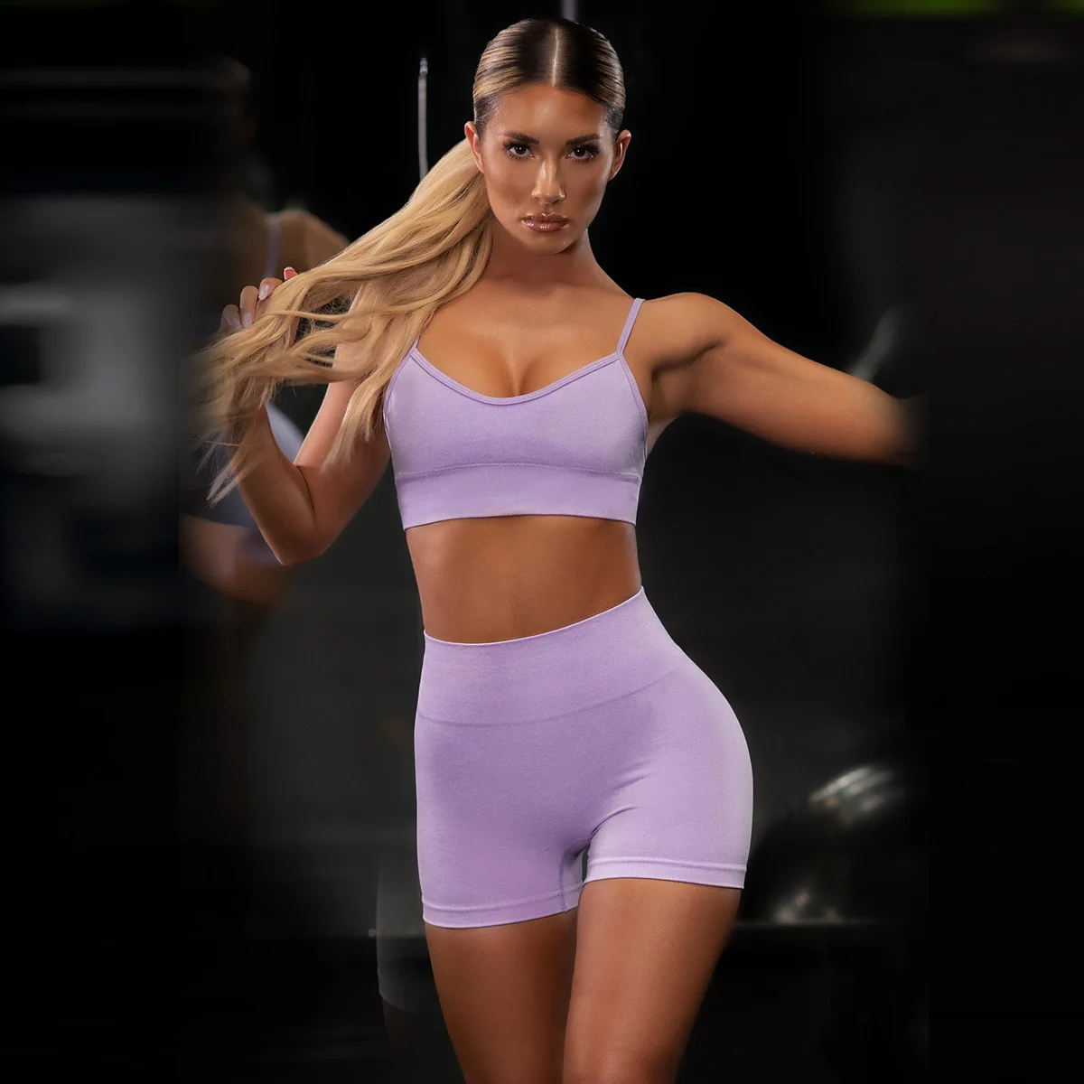 Комплект для йоги из 2 предметов, женский спортивный бюстгальтер, топы, бесшовные шорты, одежда для тренажерного зала, одежда для фитнеса, тренировок, шорты, одежда для бега и тренировок