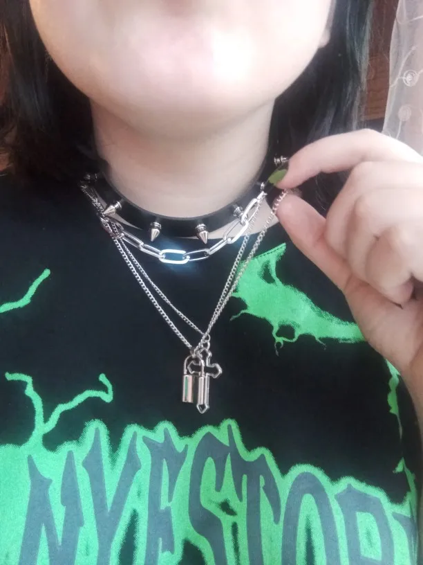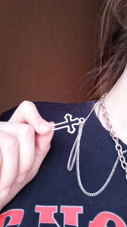 доставили быстро, упаковано хорошо, товар соответствует описанию цепочка довольно лёгкая на внутренней стороне кулона небольшой слой чёрной пыли, которая красится, но если сполоснуть, то всё норм будет спасибо алиэкспрессу за возможность почувствовать себя готкой