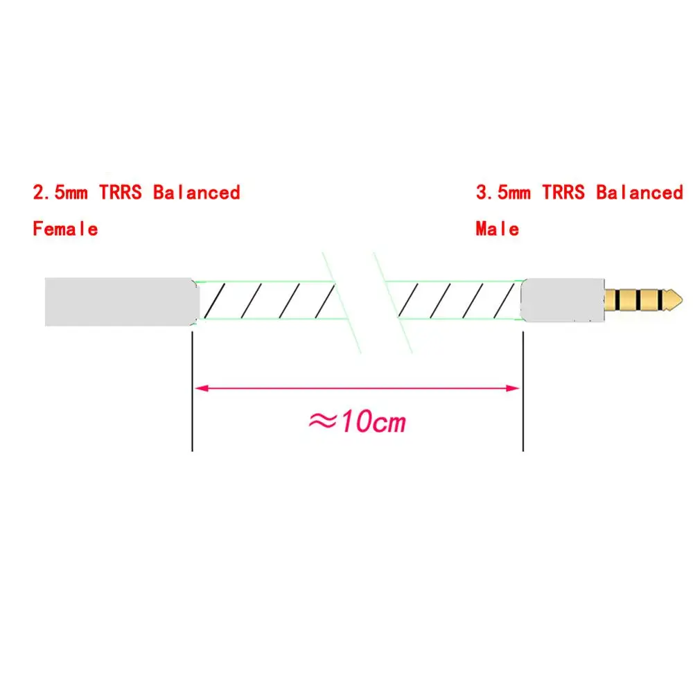 Разъем:1x3,5 мм балансный штекер TRRSМужской, 1x2,5 мм TRRS балансныйЖенский