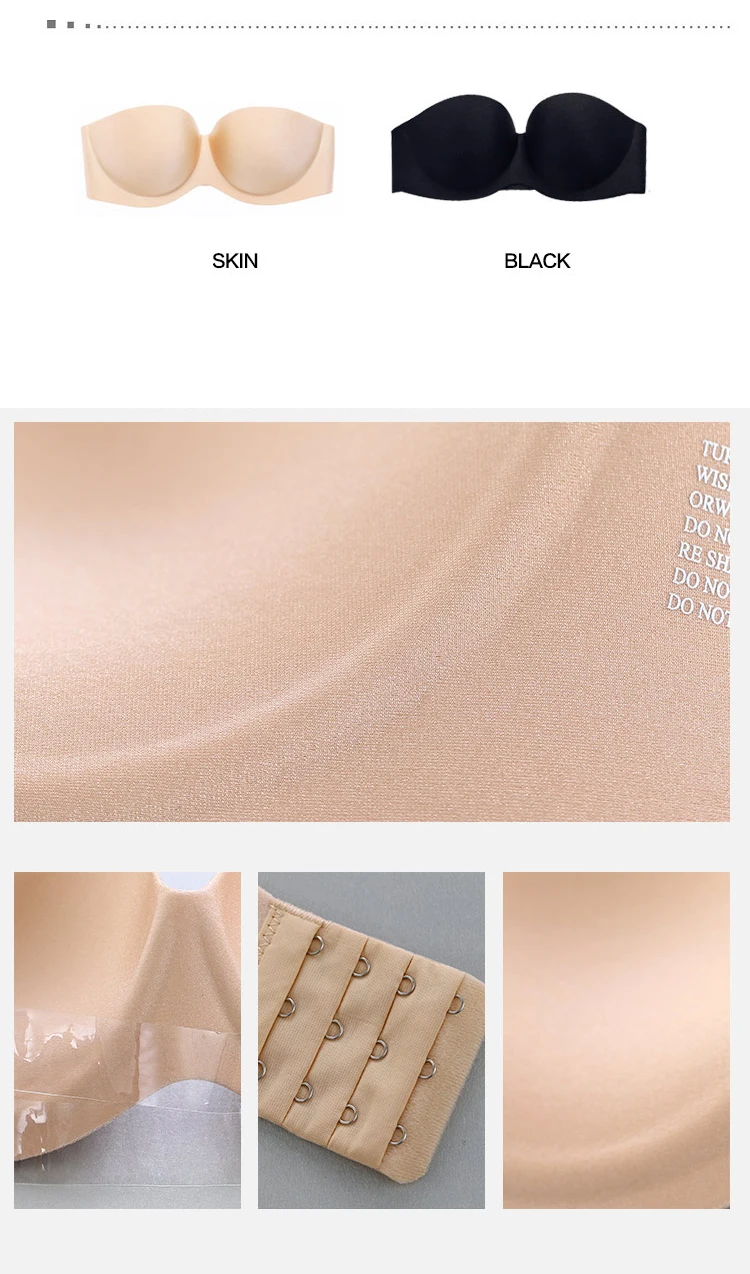 Женское Бесшовное нижнее белье без бретелек, мягкий черный невидимый бюстгальтер с чашками пуш-ап