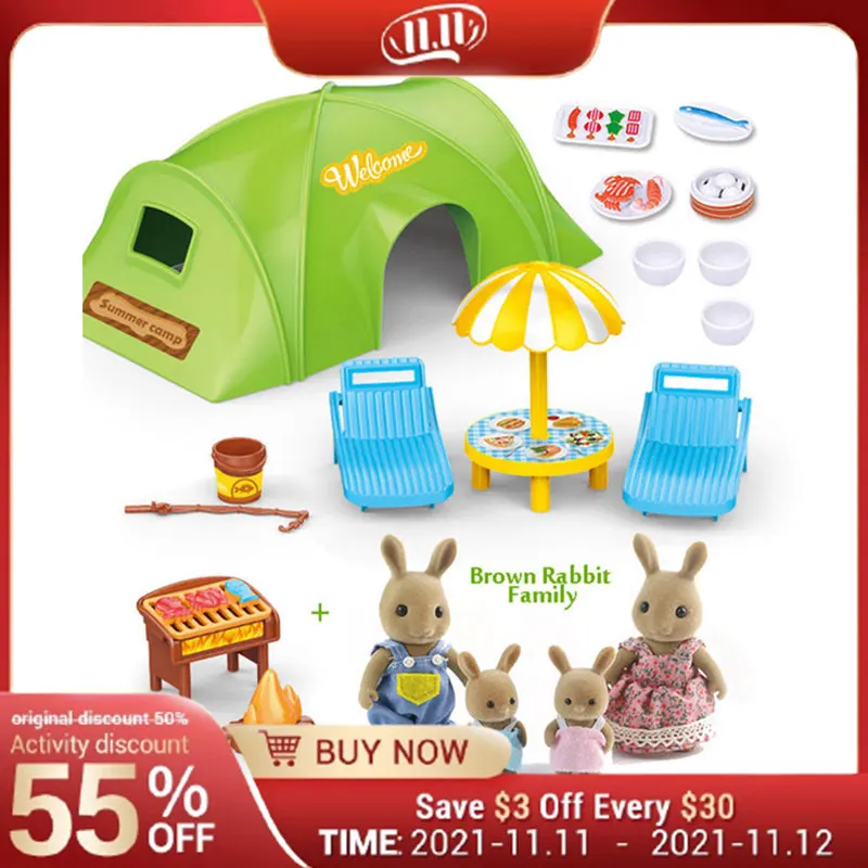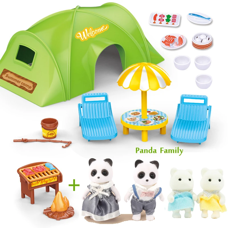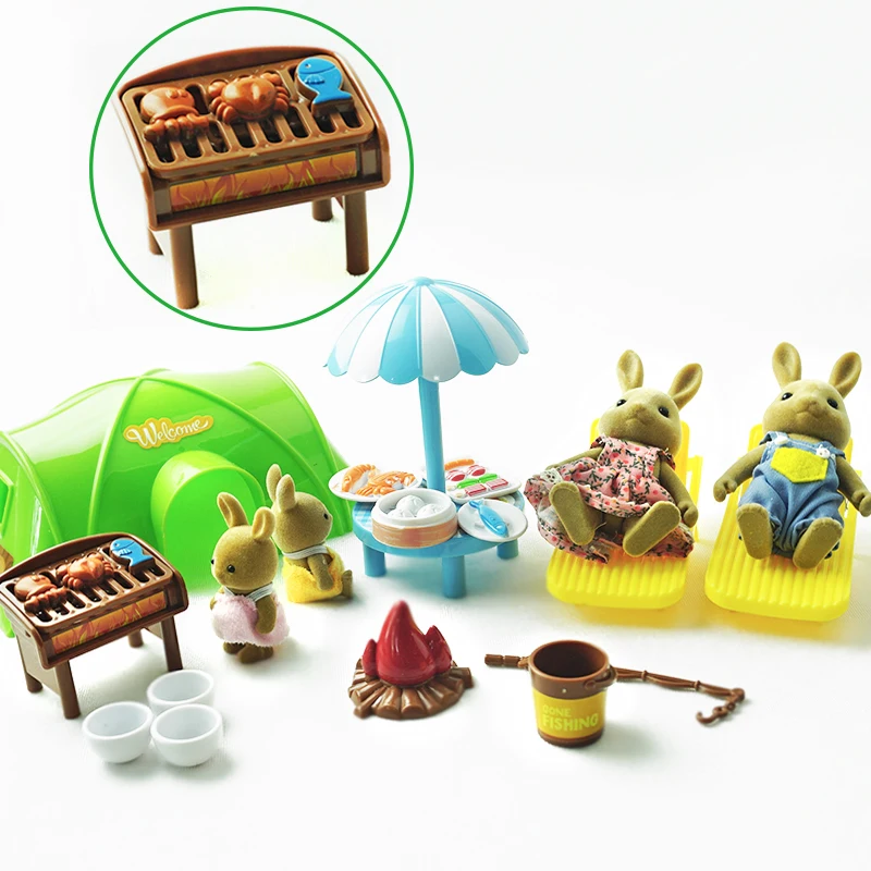Мебель для кукольного домика в масштабе 1:12, миниатюра, палатка для пикника, Детская модель, лесное животное, семейный кролик, медведь, игрушки для девочек, подарки